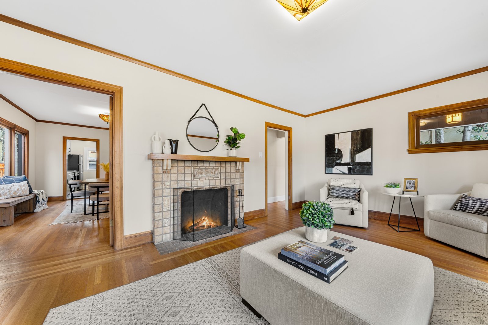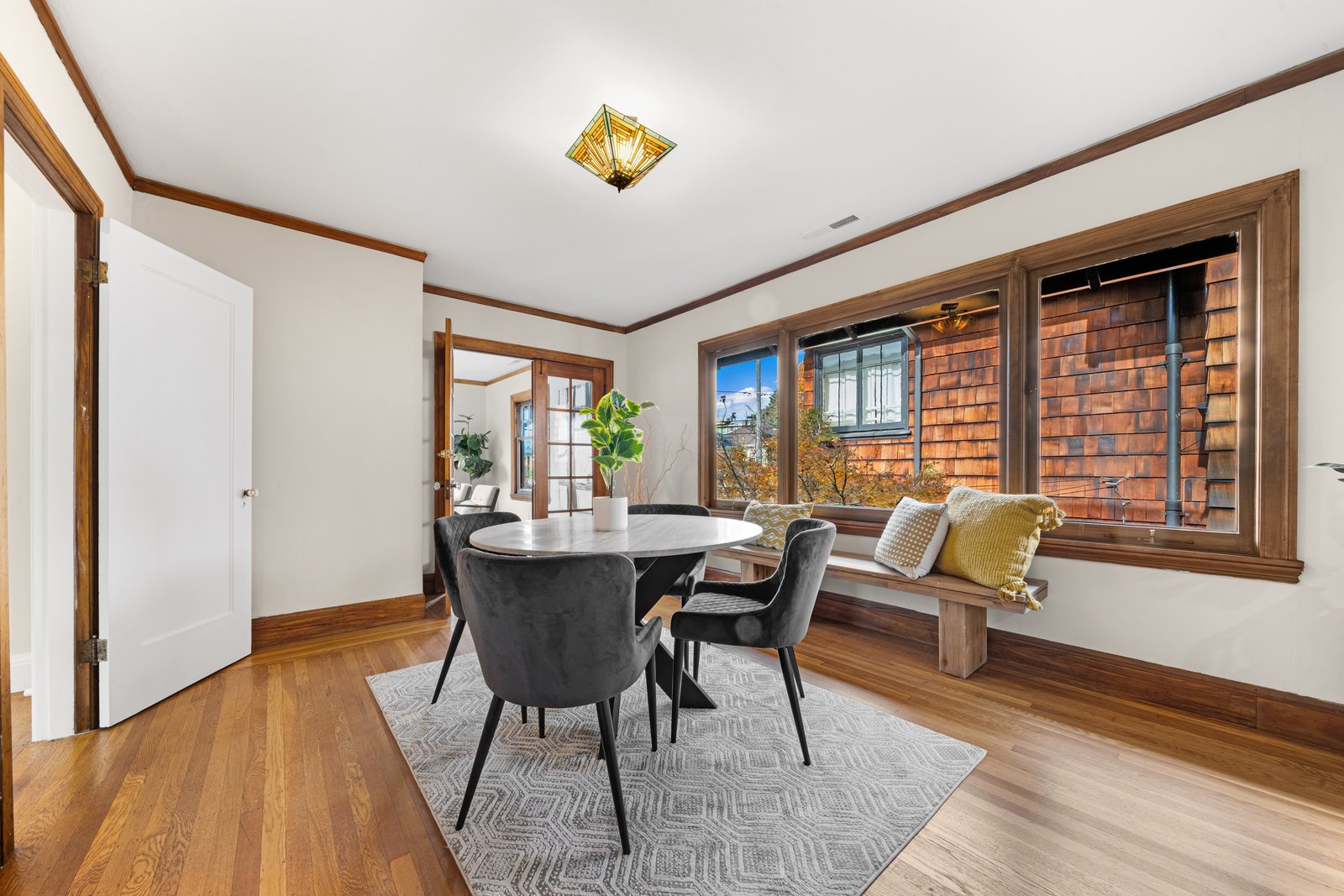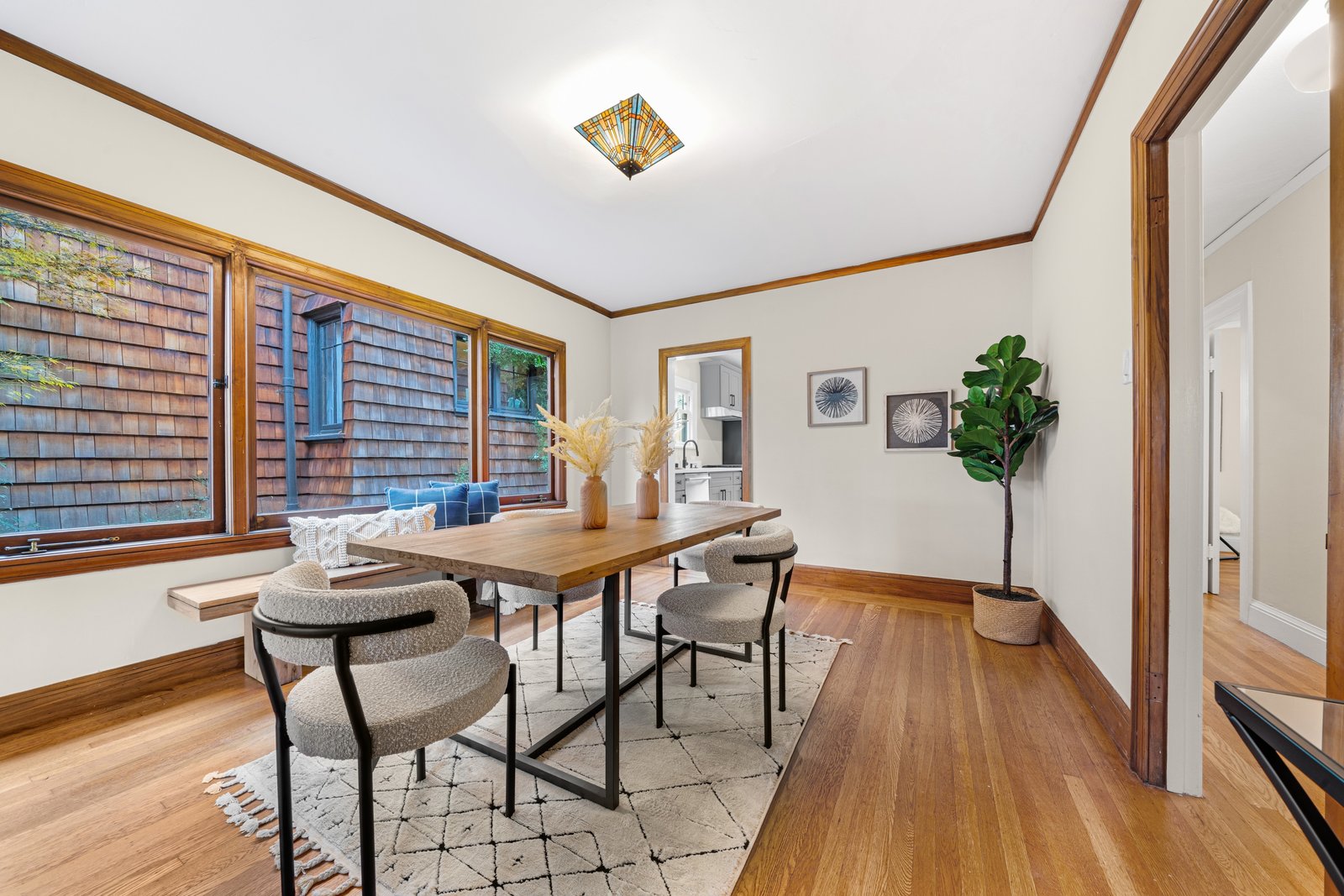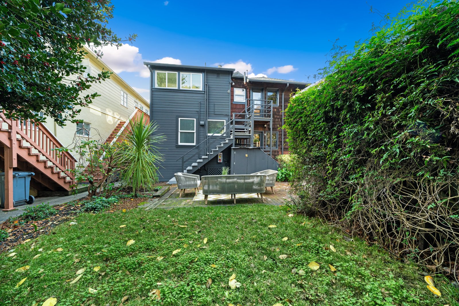 It’s a Julia Morgan. Historic Berkeley brown shingle duplex in this highly desirable North Elmwood community. Two elegant 2 bedroom / 2 bath flats rich in style and character with many unspoiled original craftsman elements including natural unpainted wood trim, double hung windows, and refinished wood floors. Formal dining rooms. Tastefully remodeled kitchens and baths with quartz counters, new appliances, new lights, and waterproof flooring. Newer forced air furnaces, energy efficient lighting, new roof, clear pest. Large, detached garage with additional storage. A very unique and “rare find,'' for an extended family or as an investment opportunity. Live in one flat and rent the other.