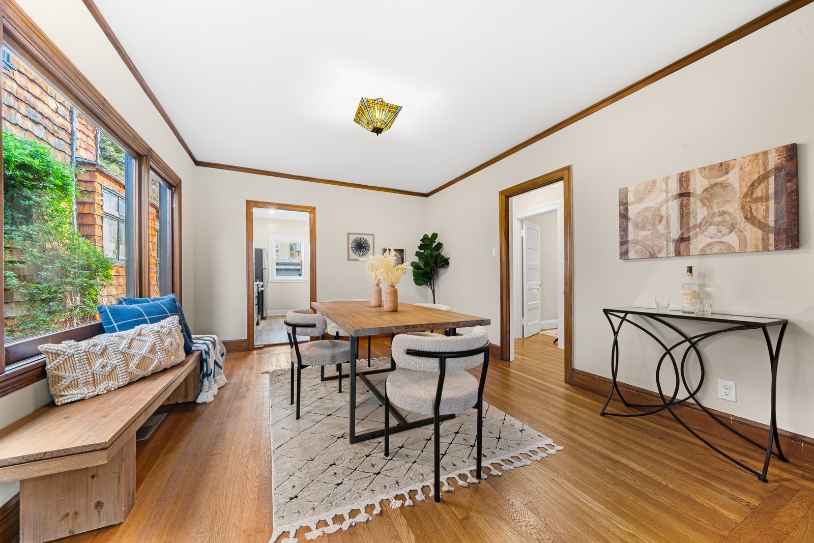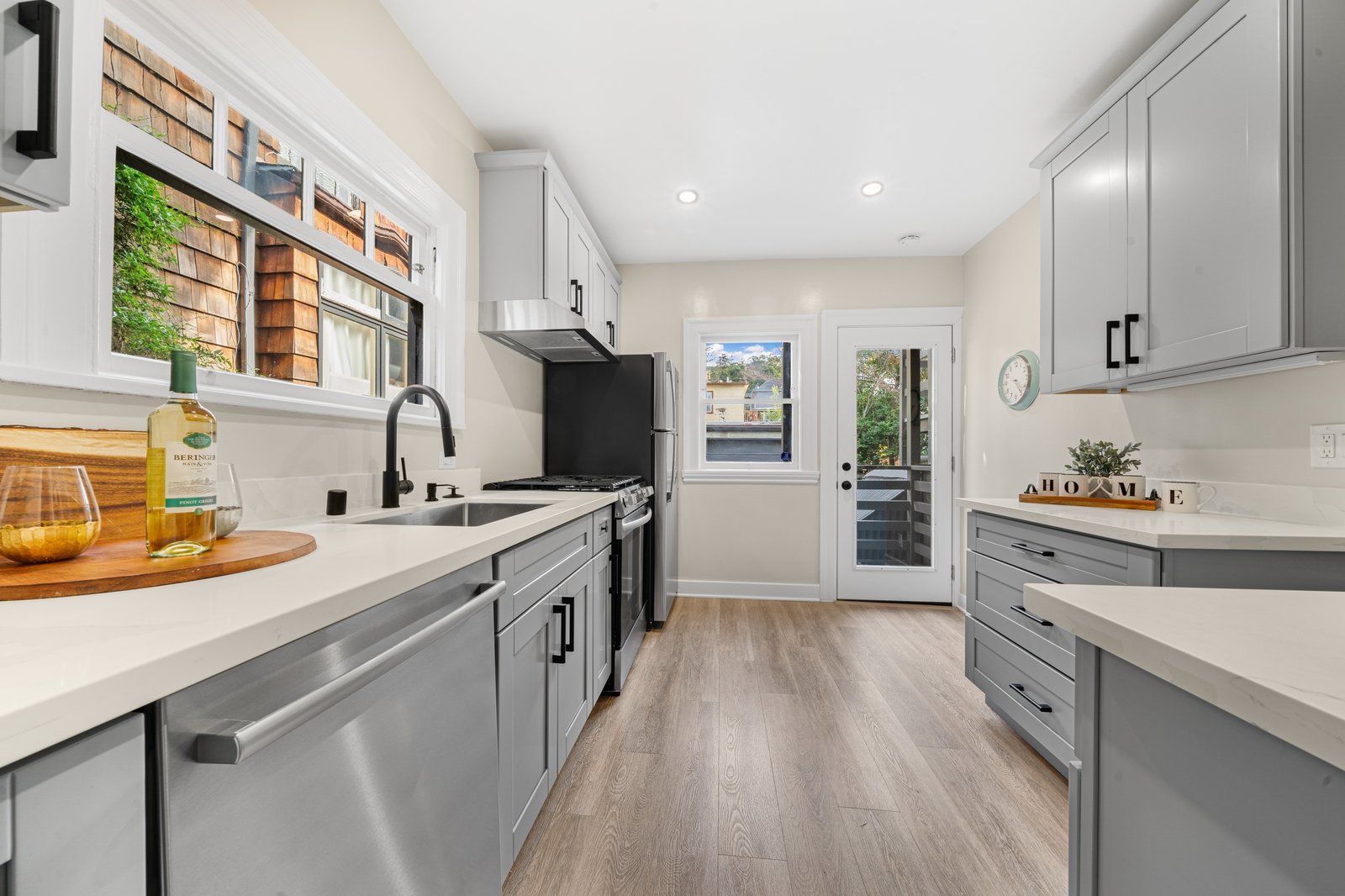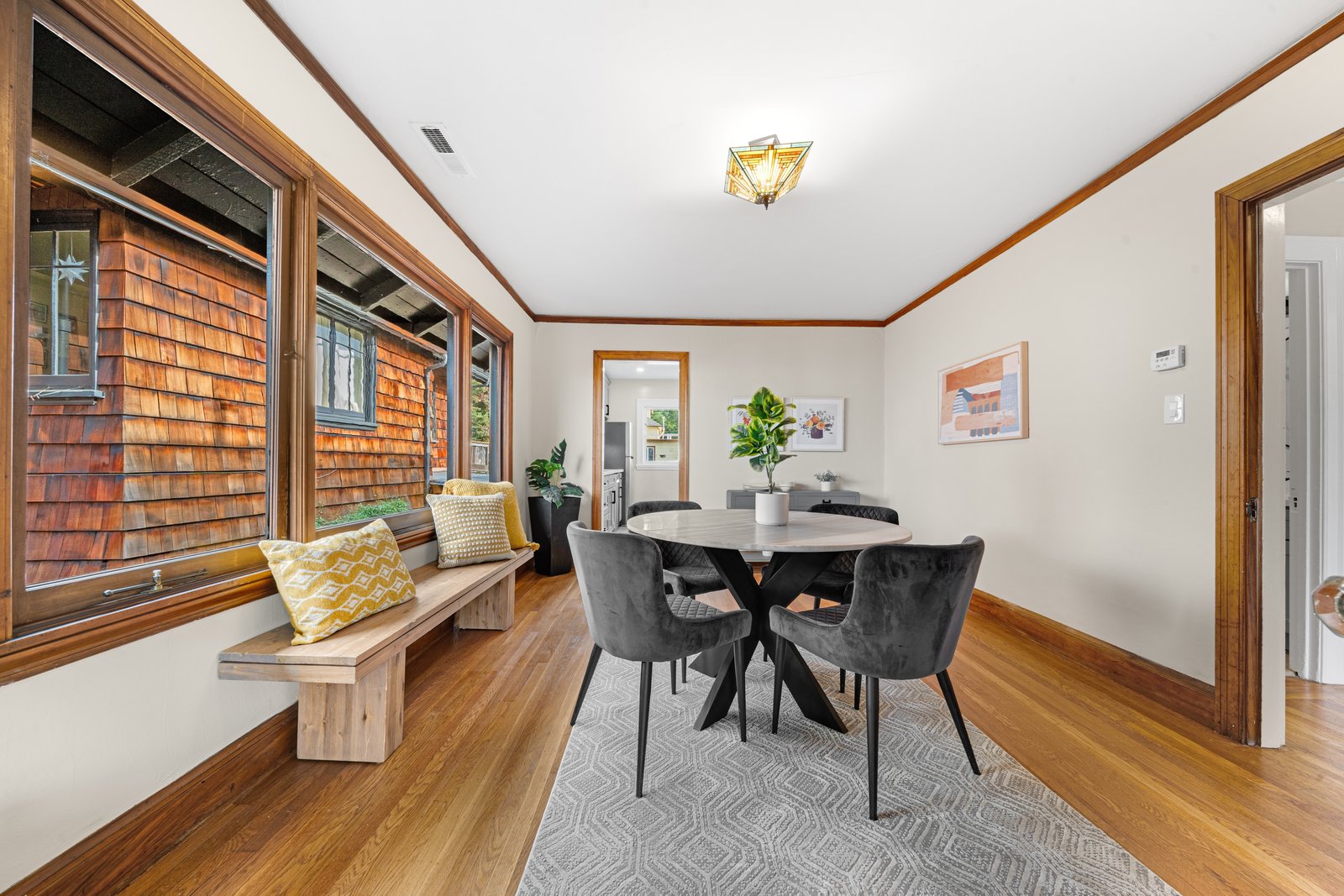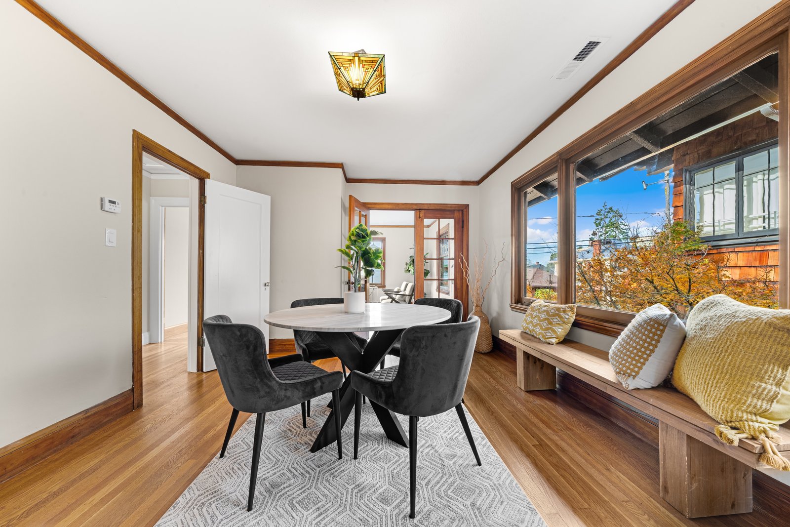 It’s a Julia Morgan. Historic Berkeley brown shingle duplex in this highly desirable North Elmwood community. Two elegant 2 bedroom / 2 bath flats rich in style and character with many unspoiled original craftsman elements including natural unpainted wood trim, double hung windows, and refinished wood floors. Formal dining rooms. Tastefully remodeled kitchens and baths with quartz counters, new appliances, new lights, and waterproof flooring. Newer forced air furnaces, energy efficient lighting, new roof, clear pest. Large, detached garage with additional storage. A very unique and “rare find,'' for an extended family or as an investment opportunity. Live in one flat and rent the other.