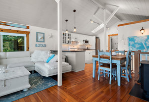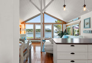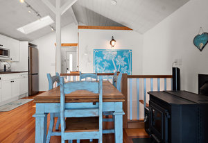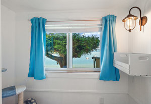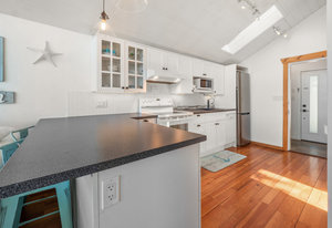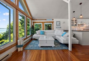 This oceanfront gem offers an inviting living space with vaulted ceilings and a thoughtfully designed interior that maximizes space and functionality. The kitchen boasts ample cupboard space and a practical breakfast bar. The living area, with its stunning ocean views, is a perfect spot to relax and unwind. The bedroom, located on the lower level, features a large bay window and walkouts to the decks. An enclosed sitting area with an energy-efficient infrared heat lamp allows you to enjoy the outdoors year-round.