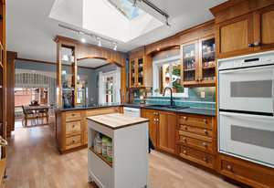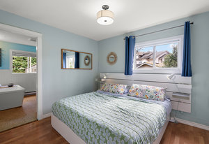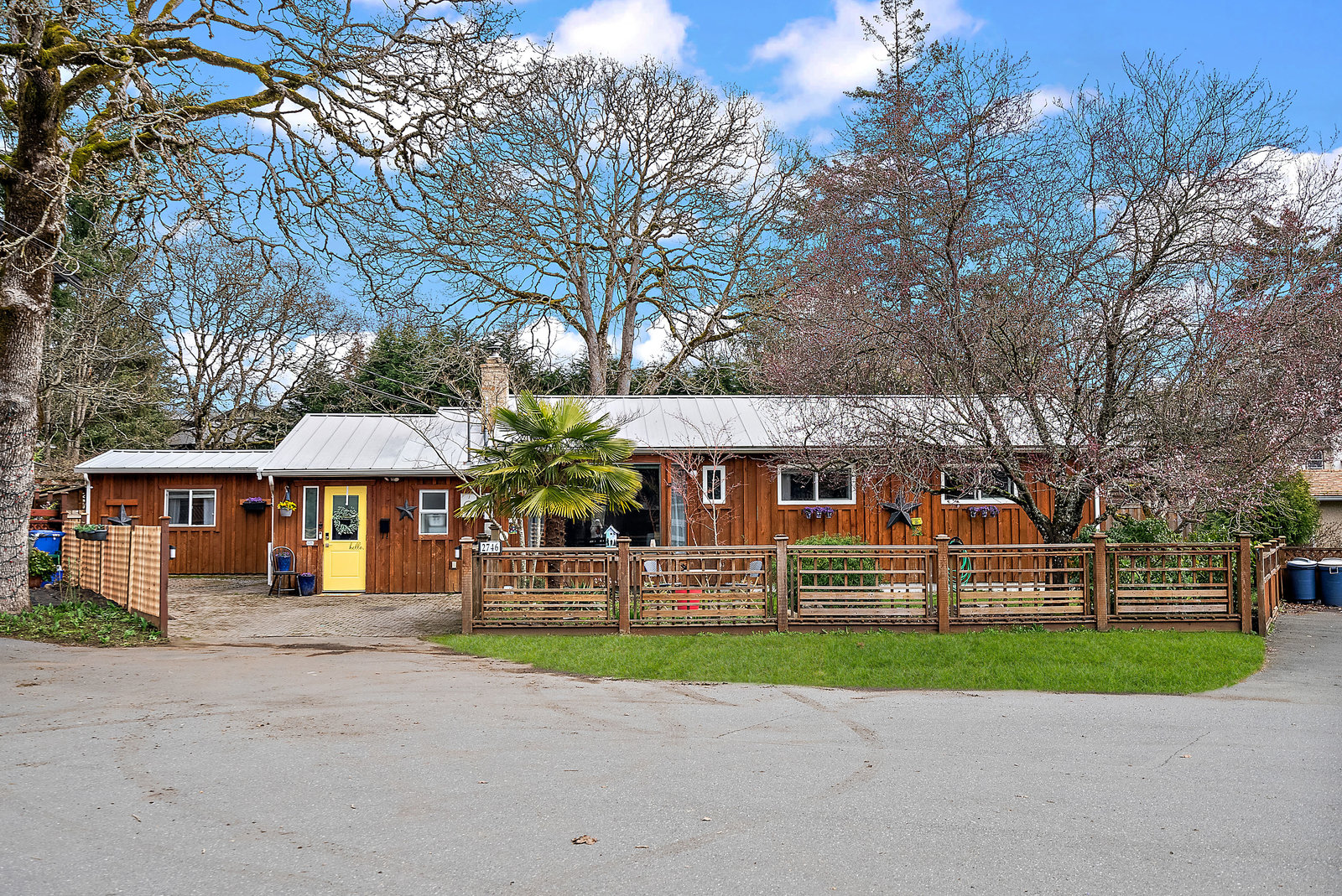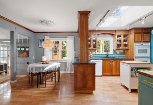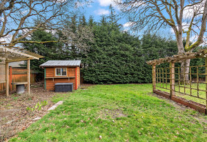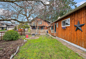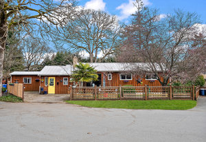 Welcome to this charming one-level rancher, tucked at the end of a quiet cul-de-sac in central Langford. Enjoy the beautifully landscaped, private, 9000 sq/f lot - a rarity in such a convenient location! Inside, you'll find 3 bedrooms & 2 bathrooms (including ensuite with separate shower & soaker tub). The kitchen with walk-in pantry is truly the heart of the home here, opening to an eating area & family room, connecting to a separate living room & formal dining room. Large windows & skylights fill this home with natural light. Step out to the large covered patio through sliding glass doors, perfect for outdoor entertaining & extending to a grassy meticulously maintained...