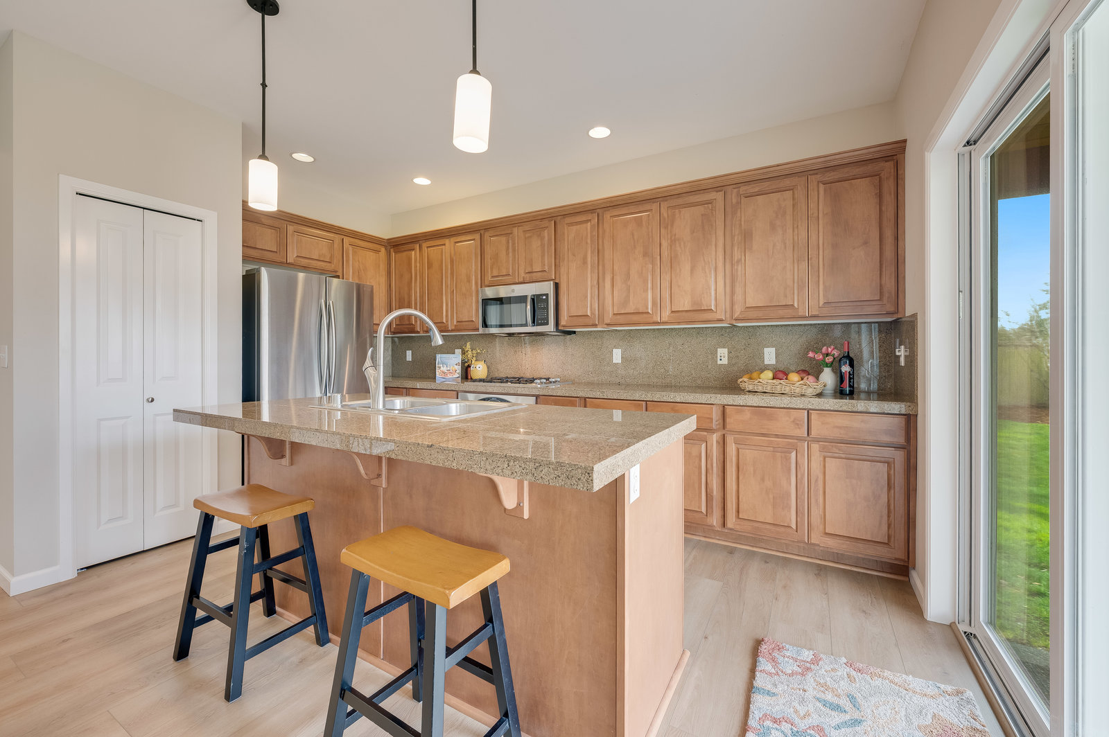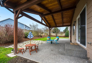 One of the most desirable floor plans in this development, this home features options for you on how to use your space. The first floor features an office, open area that could be a dining room, a sitting area, a spot for your piano or ? The open floor plan allows for the kitchen, dining area and family room to meld into each other allowing for a large entertainment space for those special occasions - open the slider and include that covered patio and it's even better. There is wiring in place for a hot tub if you are interested and the fenced yard is big for just about anything you would want to do. Don't miss the fruit trees and the speciman maple trees.