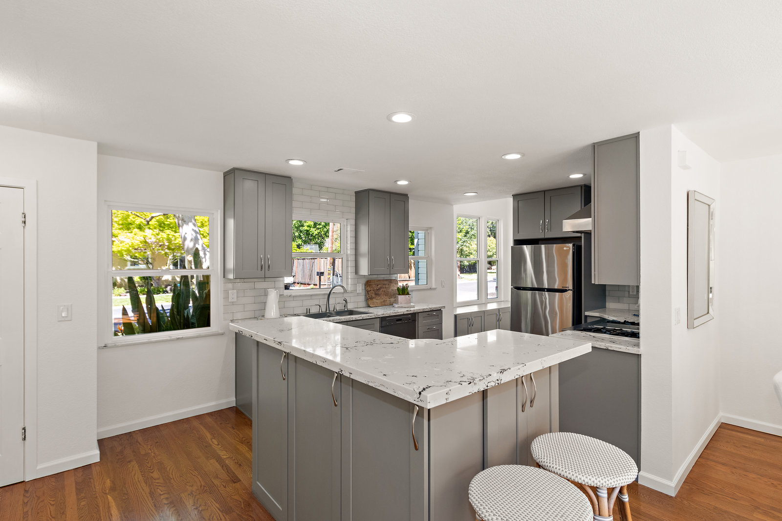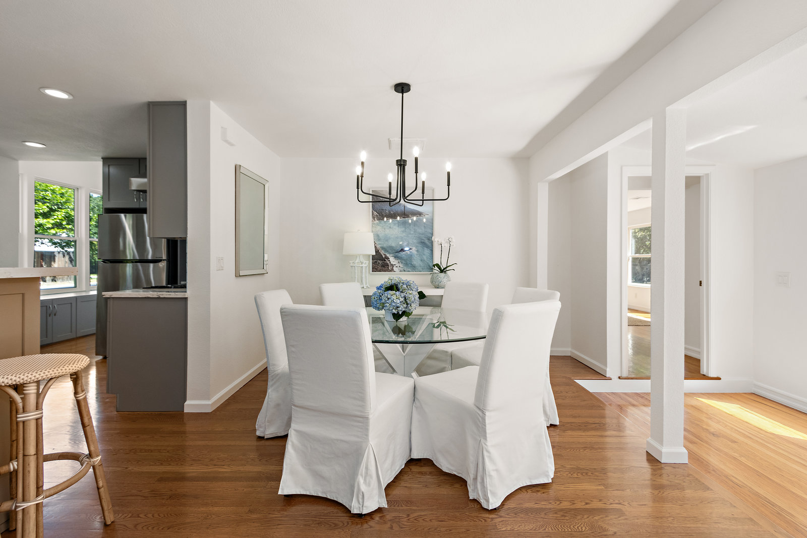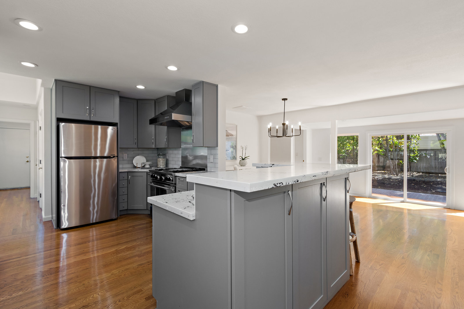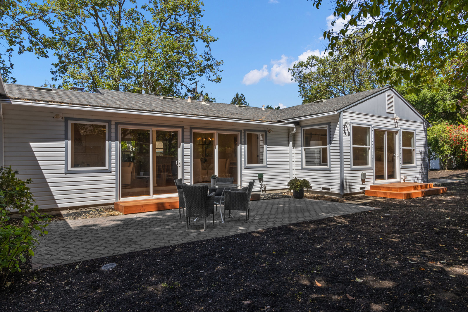 Nestled on a flat lot within a cul de sac, 2 Evergreen Court embodies charm at every turn. This single-story residence beckons with its delightful curb appeal and welcoming front porch. Step inside to discover an open floor plan with natural light, creating a light and airy ambiance. The hardwood flooring throughout the home adds warmth and timeless appeal to the interior. The remodeled kitchen features elegant gray cabinetry, a professional-grade stove, stainless-steel appliances, and a spacious walk-in pantry. There are 3 bedrooms, including a generous primary suite with a remodeled, spa-like bathroom and a walk-in closet. The primary suite leads to the tranquil backyard through a sliding door. Outside, the expansive front, back, and side yards offer endless possibilities for landscaping, gardening, outdoor entertainment and play areas. Ideally located in the sought-after Saranap neighborhood of Lafayette (formerly Walnut Creek), 2 Evergreen Ct is in the top-rated Lafayette school district.