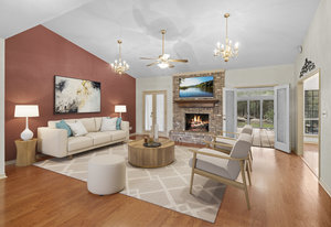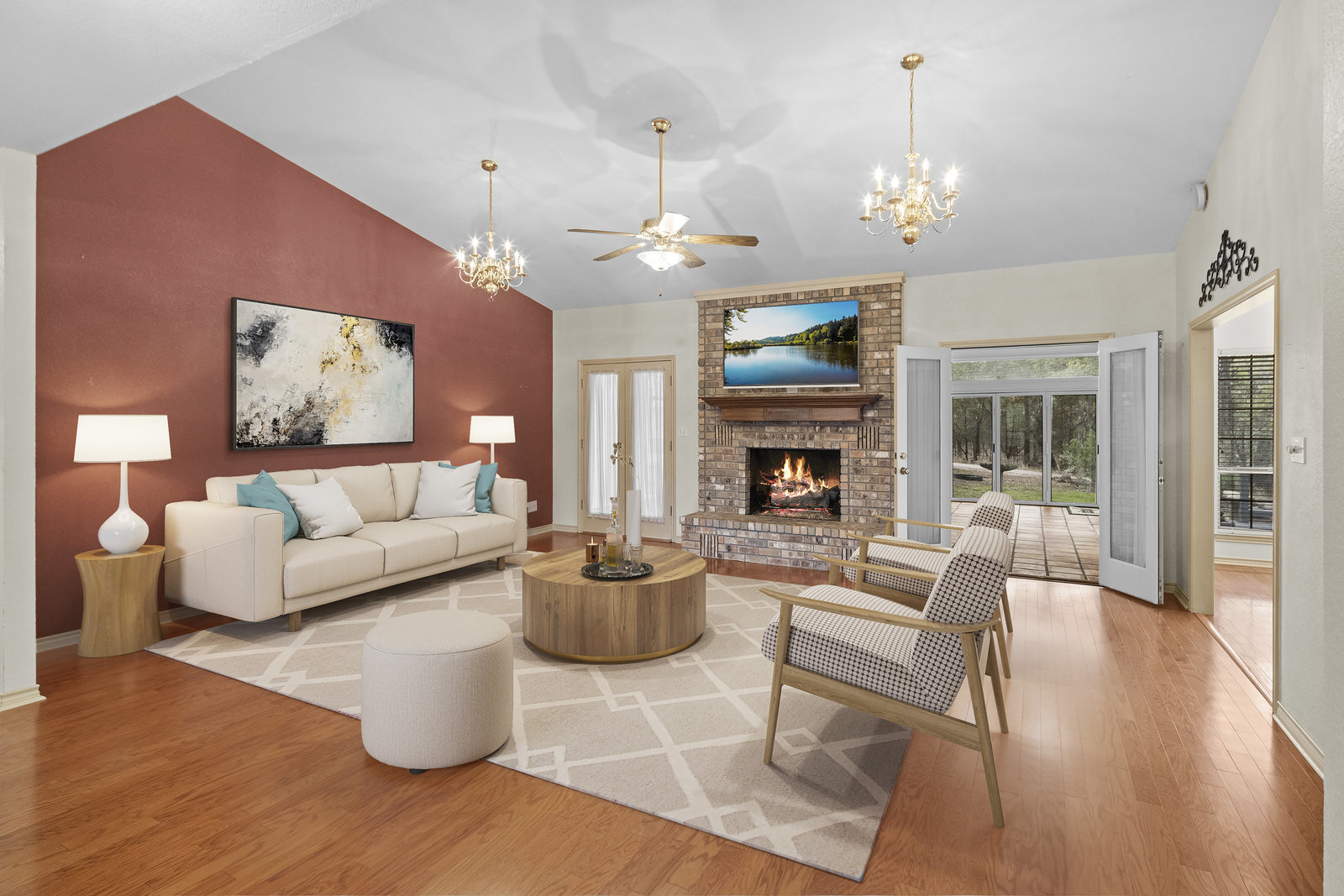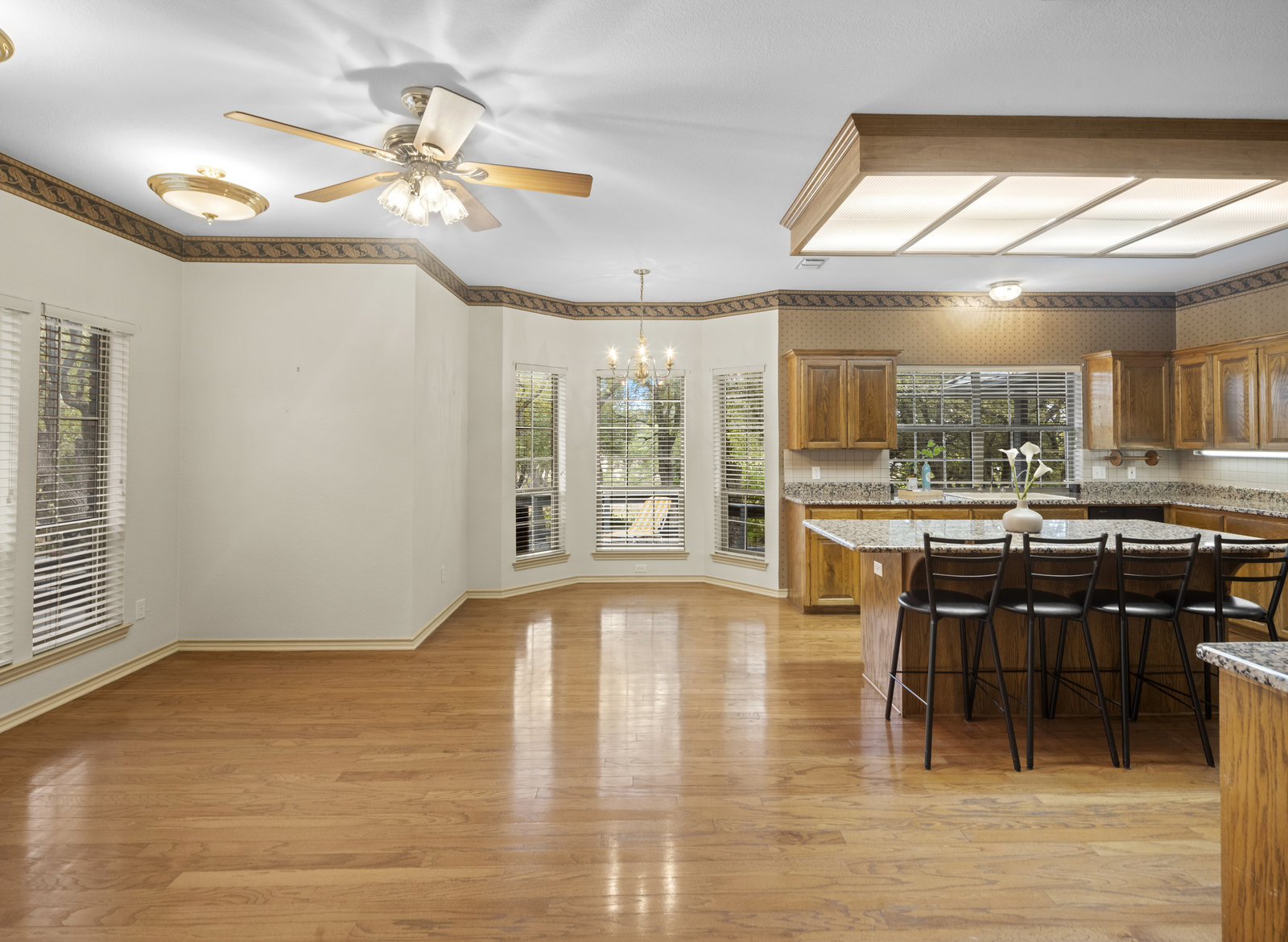 Beautiful home offering comfort and tranquility with mature trees and peaceful creek views! Features vaulted ceilings, rich hardwood floors, and a spacious living room with a cozy gas fireplace. The kitchen boasts granite countertops, a gas cooktop, and plenty of room for entertaining, plus a formal dining area for special occasions. Recent updates include new carpet in the two bedrooms with carpet, fresh interior paint, and a freshly stained deck. With three A/C units, enjoy ideal comfort year-round. The primary suite offers a versatile nook ...