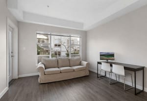 Welcome to the Shire, featuring a beautifully appointed 1 bedroom, 1 bathroom condo offering 539 sq ft of bright, airy living space. Built in 2017 by the Vidalin Group, this well-maintained wood-frame condo features an open-concept layout with hardwood flooring, quartz countertops, and stainless steel appliances. Large windows flood the space with natural light, creating a warm and modern atmosphere.