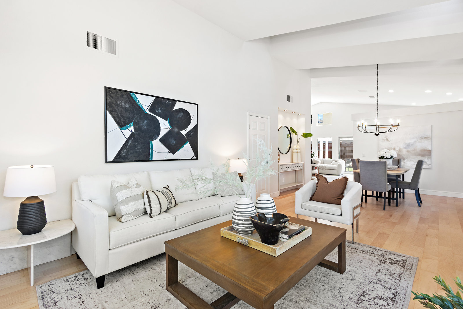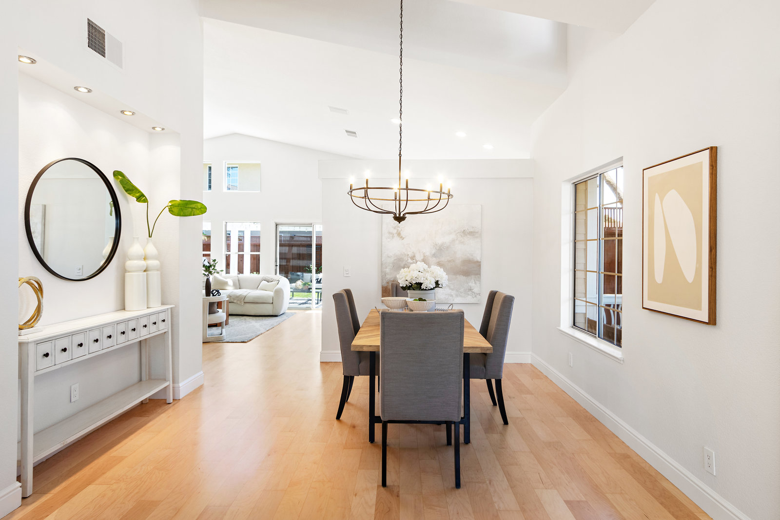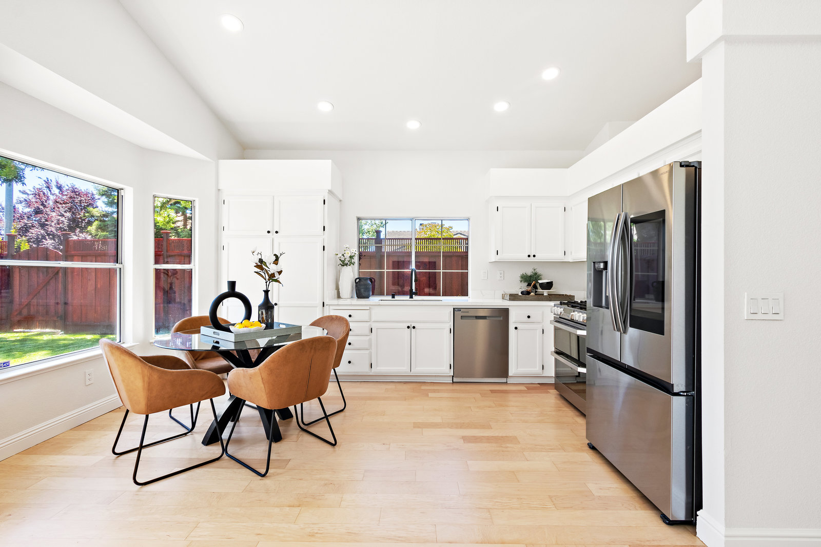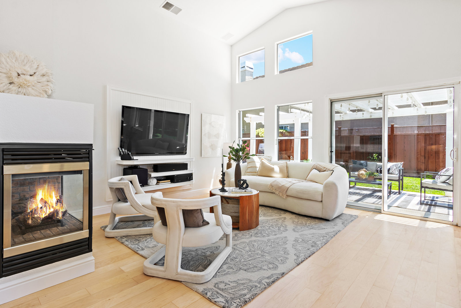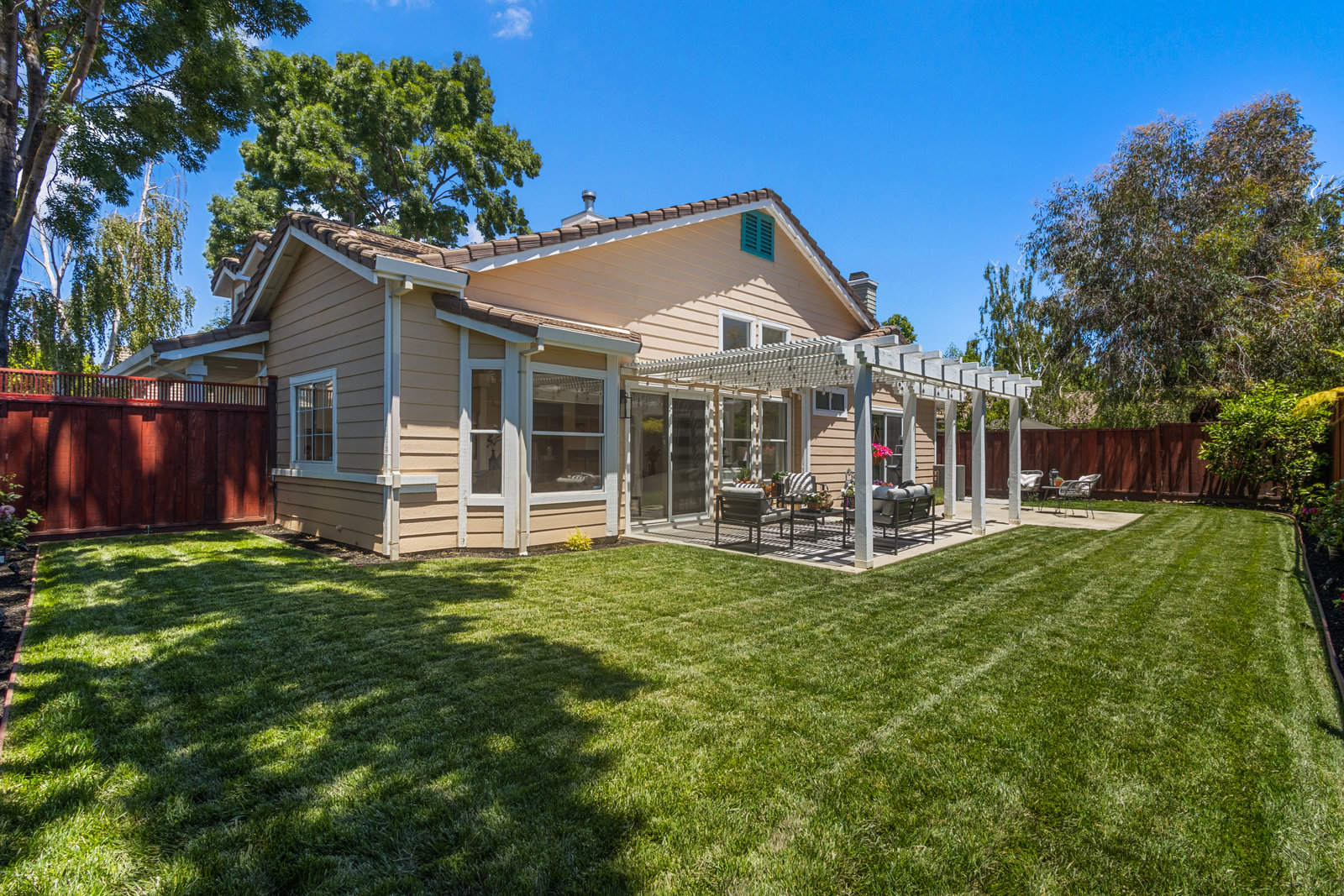 Beautifully updated home in a fantastic neighborhood! Built in 1994 with great curb appeal! Charming front porch, new front door and stamped concrete, cement tile roof. Near Fairlands Elem, Thomas Hart, shopping and quick walk to popular Meadows Park. Great ambiance with light filled spaces, vaulted ceilings, and an open floor plan that makes the home feel spacious yet comfortable. Newly refinished engineered hardwood floors throughout. Large formal living room with separate dining area. Open kitchen/family room combination with new stainless-steel appliances, kitchen nook, pantry, quartz counters. Welcoming great room enhanced by a modern see-through peninsula gas fireplace and built-in speakers. The primary suite features a built-in bookcase and two closets. Updated primary bath with new vanity, dual sinks, quartz, and new fixtures. Oversized tub, tile floor. Total of three bedrooms, all with closet organizers. Two full baths. Fun home for entertaining and relaxing with a pretty and private yard with a lush lawn. Recent fence replacement, remote controlled outdoor lighting and electric fountain. Patio is covered by a wood pergola. Recently painted interior, updated light fixtures and recessed lighting, Leviton smart home system.Newer central heat, AC, hot water heater.
