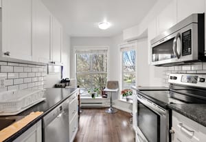Invincible location in the desirable Jubilee area! This fully furnished 2 bed, 2 bath bright corner suite offers a well-designed layout, exceptional privacy, and unbeatable central convenience. Meticulously maintained and refreshed with new hardwood flooring in the main living areas, fresh paint, modern baseboards, and an updated kitchen with new counters, stylish cabinetry, subway tile backsplash, and new appliances. The sunny living room features a cozy gas fireplace and access to a private covered balcony overlooking lush greenery. The spacious primary bedroom includes its own ensuite, and both bathrooms are full 4-piece. In-suite laundry, secure underground parking, visitor parking, and ...