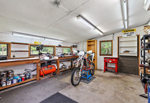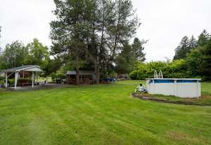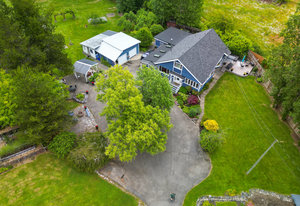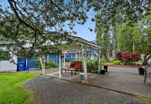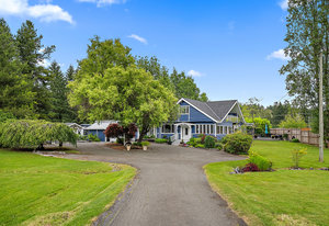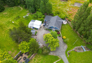 Discover your dream home on 1.79 park-like acres, a beautiful oasis offering the perfect escape from city life. This exquisite property features three spacious bedrooms and two baths, designed for comfort and relaxation. Surrounded by noise-buffering trees, you'll enjoy unparalleled tranquility. Begin your mornings with coffee in a different serene spot every day of the week. The large yard offers an orchard abundant with various fruit trees and wooded trails for leisurely strolls with your dog. Versatile paddocks provide space for a hobby farm or events venue. A large double door garage includes a 400 sq ft workshop, ideal for any project. The semi-detached, one-bedroom, one-bath suite is very...