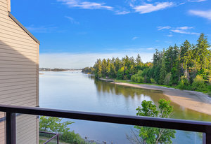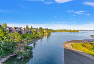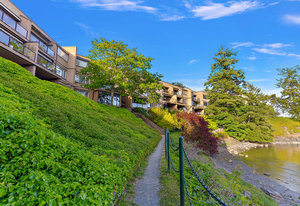 Discover your future in this exceptional top-floor waterfront condo in scenic View Royal. From your expansive balcony or walk a few steps to the water & you can embrace daily wildlife sightings, from majestic eagles to graceful herons & playful otters right from your sanctuary. The well-managed strata features a unique layout with direct outdoor access, eliminating interior hallways.This home offers 2 well-separated bedrooms, highlighted by a bright primary suite with walk-through closet & full ensuite bath,alongside a 2nd full bath. Enjoy the convenience of in-suite laundry with extra storage & an open concept living area that flows into a spacious kitchen with eating bar. Spanning...