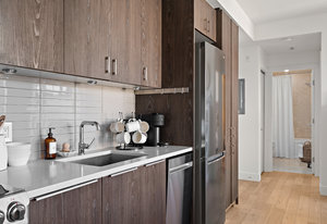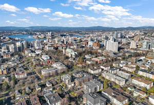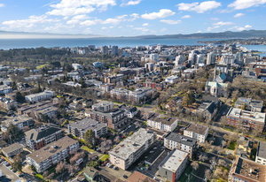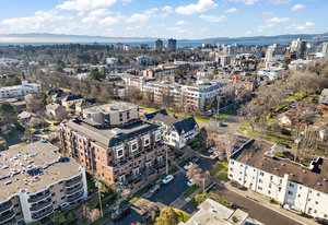 Welcome to this upscale, urban one bedroom home at the edge of Downtown and steps to Cook Street Village! You will love this centrally located condo with short walks to all amenities, Beacon Hill Park and Dallas Road ocean front. Heritage inspired Brownstone style exterior with high caliber interiors. Engineered hardwood floors, quartz countertops, Benson cabinetry, stainless appliances, in-suite Blomberg laundry, in-floor bathroom heating, gas range in kitchen and BBQ hookup on balcony (included in the low strata fee), and Fibre Optic technology for fast internet. This home is filled with natural light with floor to ceiling windows. Efficient layout with space for designated living room and dining...