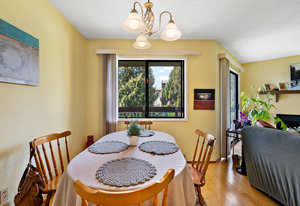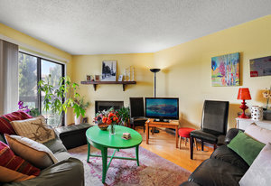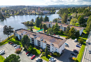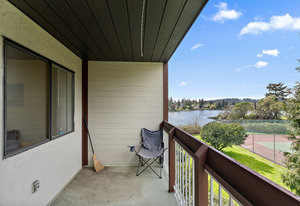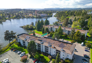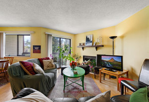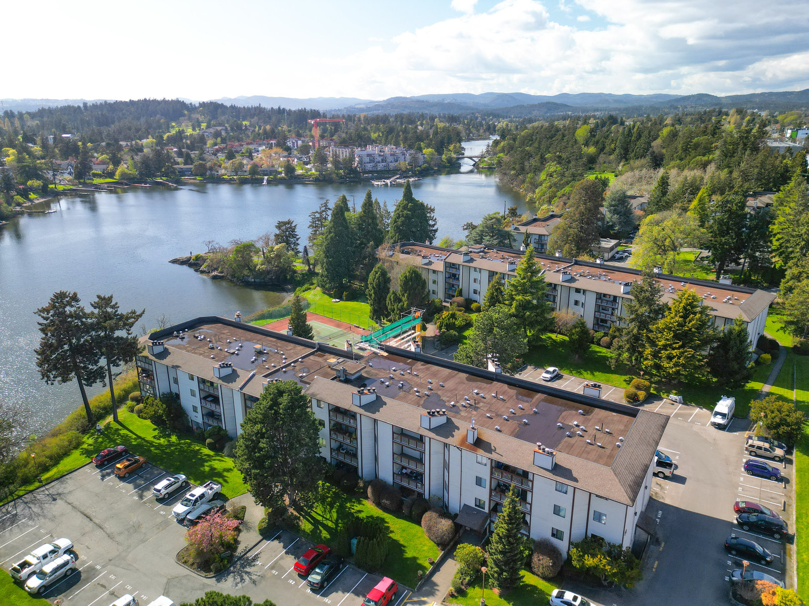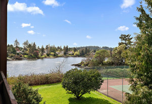 Enjoy the best of both worlds in this tranquil water-front retreat within walking distance to down-town! Situated in a serene park-like setting and surrounded by beautiful, mature evergreen trees, this bright, charming 2 bed/1.5 bath west-facing condo features an open plan living/dining room with a wood-burning fire-place, an ample kitchen and a lovely balcony overlooking the park, tennis court and Gorge Waterway. Boasting a primary bedroom with a walk-in closet and lovely view, a cute 2nd bedroom or office, in-suite laundry with modern Bosch appliances, a designated parking space, and ample in-unit storage, as well as a separate storage locker, this home has every comfort you need. ...