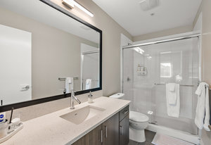Welcome home to unit 308 at Glen Heights, a prestigious residence offering unparalleled views and lakeside living in the award-winning Westhills community. This spacious 2-bed, 2-bath unit boasts abundant natural light, situated on the premium south-facing side of the building. Enjoy the freshly painted interior, along with one of the few oversized decks for private relaxation. Recent updates feature new carpeting, LG Washtower, LED lighting throughout, and modern fixtures. The unit includes stainless appliances, a large walk-in closet, electric fireplace, window coverings, radiant in-floor heating, gated parking, and extra storage. Enjoy your low monthly expenses with radiant geothermal heating ...