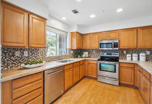 Settle down in this 3BD/2.5BA Marina Pointe townhome, situated in an idyllic waterside community with easy access to serene trails and the Bair Island Marina. Inside, you are greeted by an inviting living room with gas fireplace and elevated ceilings opening up to the family room and kitchen perched a half flight of stairs above. The kitchen enjoys granite counter tops, stainless steel appliances, tile backsplash, ample cabinet storage and a passthrough window opening to the family room, perfect for entertaining guests and hosting dinner parties. An adjacent dining area enjoys sliding glass doors opening to a sunny balcony overlooking the waterway. Upstairs, you'll find the 3 bedrooms and dedicated laundry area, including the large primary suite enjoying vaulted ceilings and en suite bathroom with dual vanities. 308 Louis also offers an attached 2-car garage with plenty of storage, and access to the relaxing swimming pool area. Conveniently located at the mid-point of San Francisco and San Jose with easy access to HWY 101 and the region's major employers.