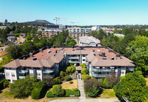 Top floor corner unit in Caywood Court. At over 1200sqft of living space, it is very rare to find a condo of this size in today's market. Set away from Shelbourne, overlooking a quiet residential road, you'll enjoy the convenience of being close to all amenities without the noise of the busy street. Being a top floor corner unit, you'll love the sun drenched wrap around balcony and the abundance of natural light throughout, without hearing any neighbours above you. Two large bedrooms, two full bathrooms, a laundry room in-unit and a spacious living space provide tons of room to spread out. This building was recently fully remediated in 2020 and is now in 'like new' condition. ...