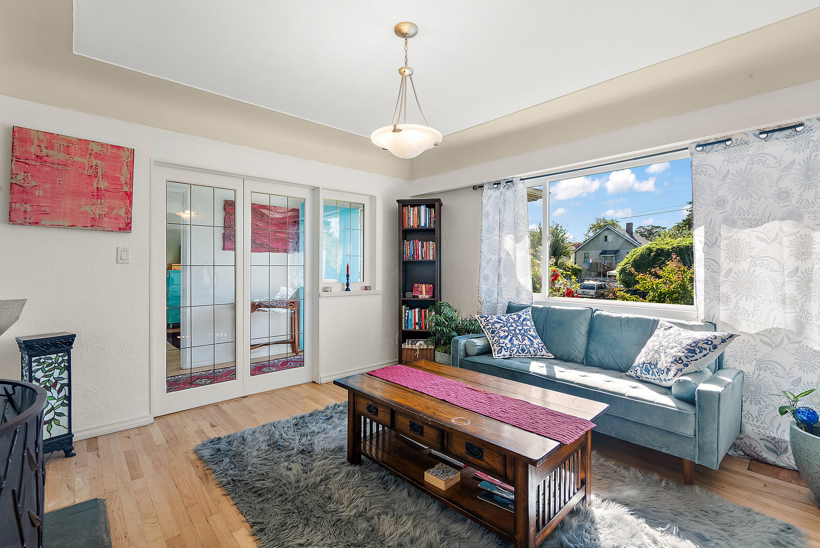 This charming property boasts 3 beds, 2 baths, including a spacious 1-bed suite, offering versatility and potential for rental income or extended family living. Spanning across 1,833 sq ft of living space on a 5,750 sq ft lot, this home provides room for your family's comfort and enjoyment. With original details like coved ceilings, wood floors, wood burning fireplace and french doors you'll love the warmth and character of this charming home. The large private deck beckons you to embrace outdoor living, perfect for hosting barbecues or enjoying the tranquility of the beautiful backyard and surrounding area. This space is perfect for entertaining friends and family or enjoying peaceful moments. Conveniently located in the sought-after Gorge area, you'll enjoy easy access to amenities, schools, parks, and transportation routes. Don't miss the opportunity to make this beautiful home in your own.