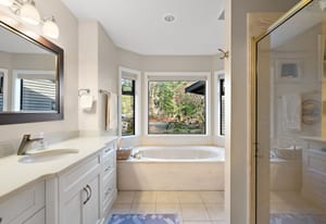 Retreat to the updated primary suite on the main floor, boasting vaulted ceilings, a generous walk-in closet, and a luxurious 4-piece ensuite with a deep soaker tub and separate shower.