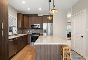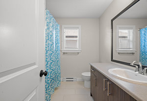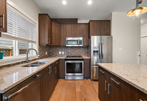 Welcome home...this immaculate, well cared for home has 4 beds, 4 baths, plus a den/bedroom on the main. There is also a legal suite that is currently a 2 bedroom but can easily be converted back to a 1 bedroom that is above the garage . Features include a new 3 head heat pump, quartz countertops, wide plank engineered floors, stainless appliances, 9 foot ceilings on main , low maint. yard, two car garage with overhead storage racks, led lighting, brand new water heater, irrigation system, hard wired inter connected fire alarms and its freshly painted too!
