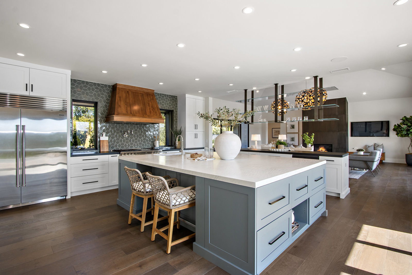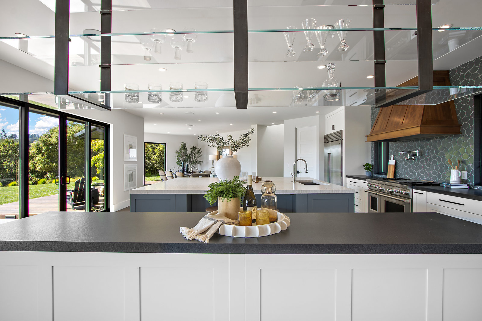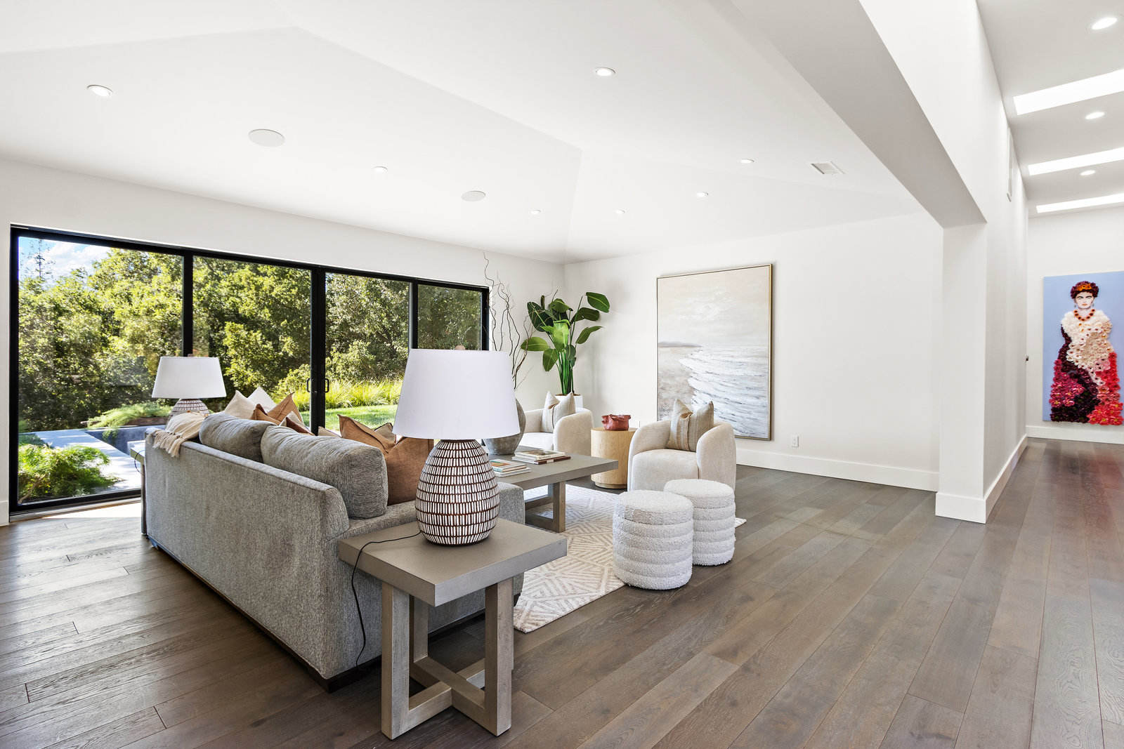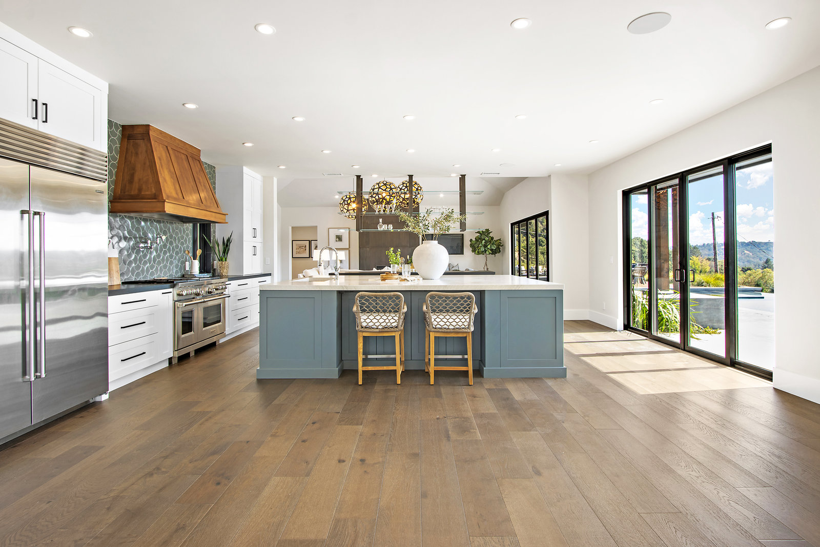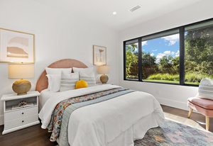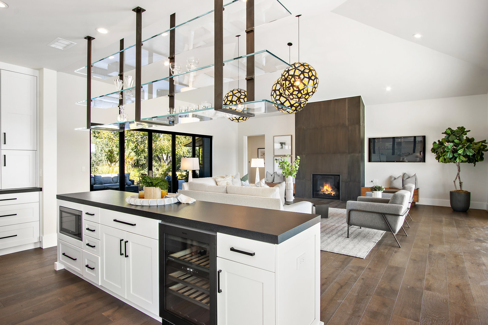 The spacious open floor plan is flooded with abundant natural light. Walls of glass highlight the captivating views from every living space and showcase the thoughtfully and professionally designed landscaping. Multiple outdoor seating areas are ideal for both relaxing and entertaining.