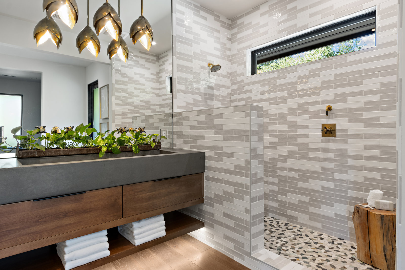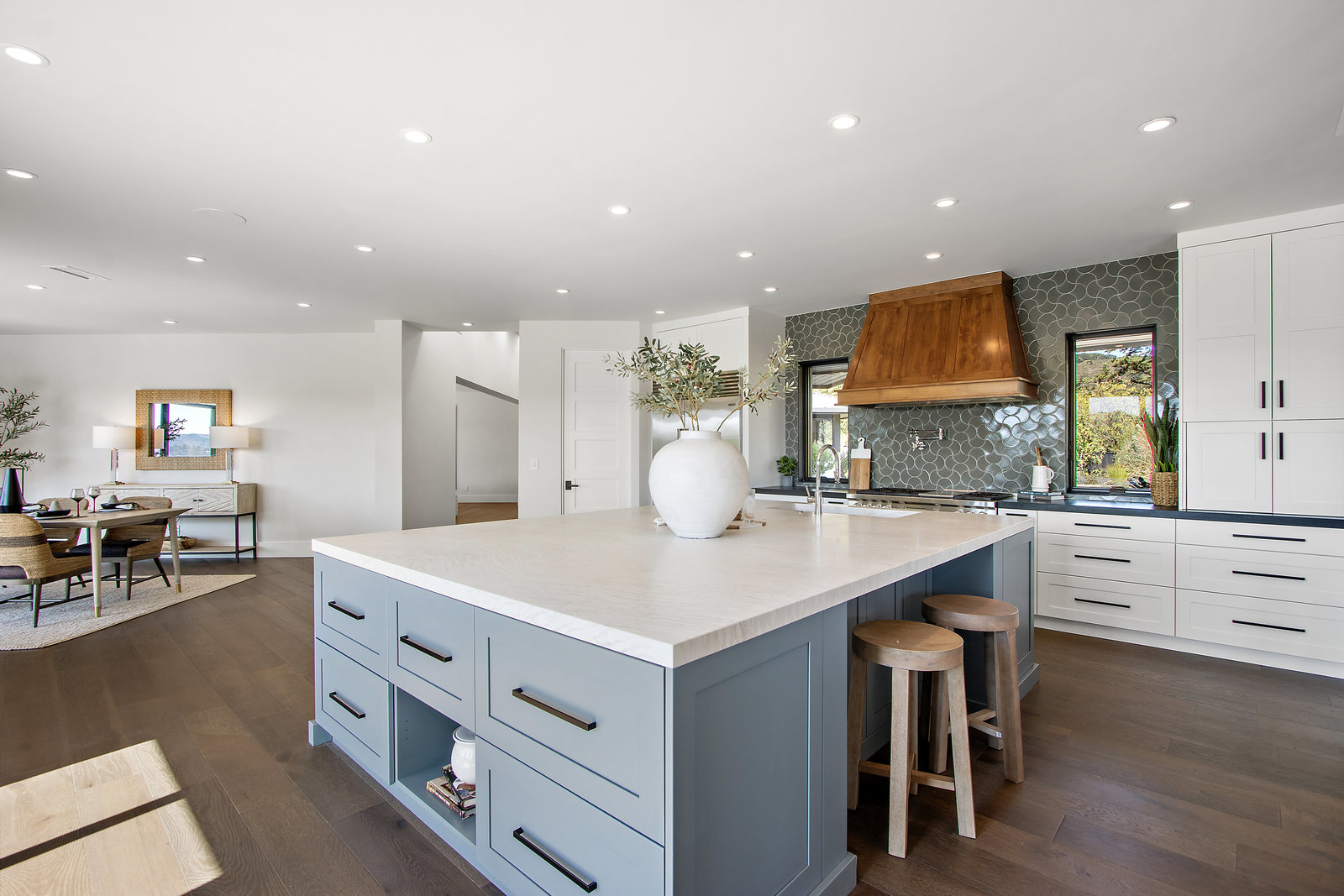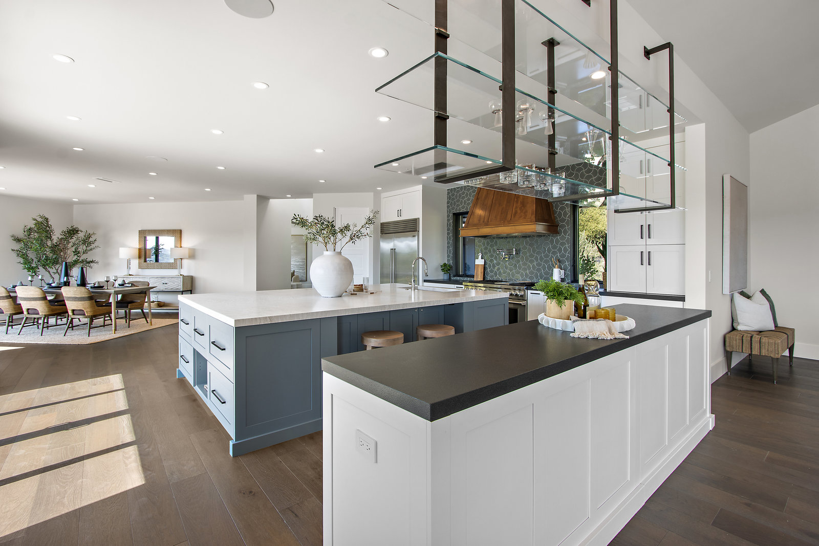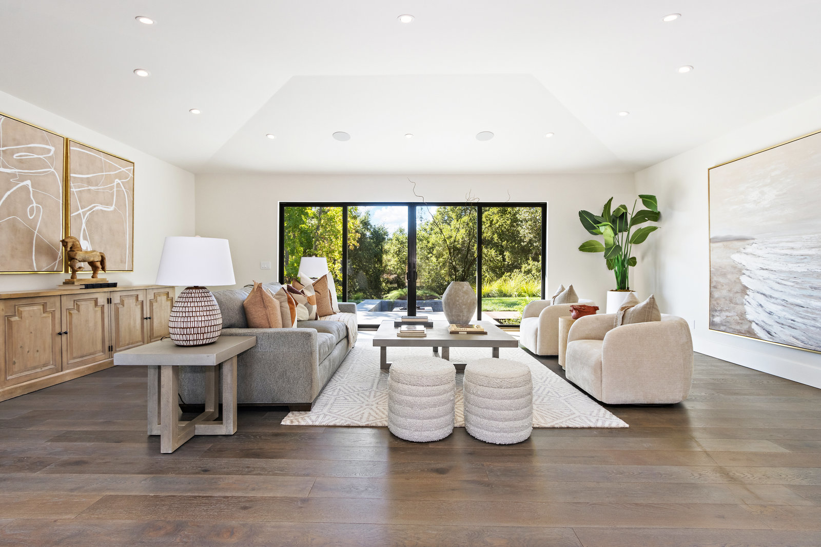 The spacious open floor plan is flooded with abundant natural light. Walls of glass highlight the captivating views from every living space and showcase the thoughtfully and professionally designed landscaping. Multiple outdoor seating areas are ideal for both relaxing and entertaining.