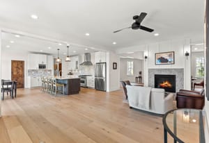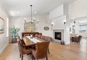 Perched on a hilltop, this expansive property boasts over 7,000 square-feet of luxurious living and entertainment space incorporating a main residence, which spans approximately 4,500 square feet, and a 2,800+ square-foot guest house, garage and outdoor kitchen. Light-filled spaces captivate with premium finishes such as soaring ceilings, generous moldings, new wide-plank French oak flooring, custom solid knotty alder doors, quartz countertops, all-new tile, and a gourmet kitchen outfitted with Viking gas range, Dacor French-door refrigerator, and Thermador dishwasher. A two-sided gas fireplace anchors the first floor living and dining areas, while the main-level primary suite features a spa-inspired bath with freestanding soaking tub, dual vanities, separate shower, watercloset and a custom his-and-hers walk-in closet with quartz island and safe-room features. Four bedrooms upstairs include walk-in closets and offer abundant guest or family accommodations.