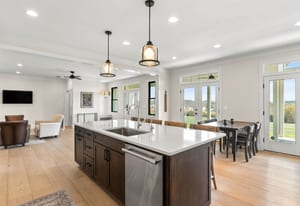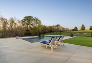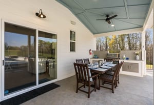 Step outside to a resort-style oasis completed in 2025: showcasing a 35’ saltwater pool with tanning ledge, custom waterfall, and underwater lighting; an expansive covered pool-side patio with integrated outdoor kitchen and sound system; sporting turf for your choice of games; and a large porcelain-tile fire pit capturing sweeping pastoral views of the property.