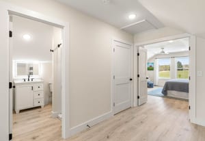 The showpiece detached garage and guest house is a bespoke haven for avid entertainers and tinkerers. The ~1,300 climate-controlled square foot garage/workshop includes three 10×10 RV-height doors, 12-foot ceilings, and 32-foot-deep bays with extensive shelving. The stunning 1,500 square foot guest house features a full kitchenette, two baths, a spacious bedroom and a bonus flex space (office/gym/second bedroom), with independent mini-split HVAC zones. Additional garage highlights include 200-Amp service (x2), 60-Amp EV charging circuits (x2), covered RV parking with full hookups (50A electric, water, sewer), and professionally landscaped grounds with 16 raised garden beds and a 200-yard shooting range.