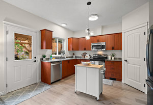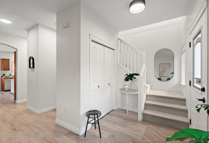 This home is the perfect blend of comfort, convenience, and modern living! Nestled on a tranquil street in the highly coveted Happy Valley neighbourhood, this beautifully updated home offers an ideal setting for families eager to be part of a vibrant community while enjoying the convenience of having everything close by. The main floor features a bright and airy open-concept layout with soaring ceilings, a sunlit dining area and kitchen complete with a pantry and easy access to the backyard. Upstairs, you’ll find a convenient laundry area, three spacious bedrooms—including one with a custom Murphy bed—and the primary bedroom boasting a walk-in closet and newly updated ensuite bathroom. Recent updates throughout the home include new flooring, updated lighting, fresh paint, and a new heat pump and gas fireplace insert, ensuring this home is truly move-in ready. The large driveway and single-car garage with a durable epoxy floor offer ample parking and storage space. Step outside to your private oasis, where a large covered patio with a pergola and a natural gas BBQ outlet awaits—perfect for year-round outdoor entertaining. Kids and pets can play safely in the flat fully fenced grassy yard, and the private hot tub area offers a serene spot to unwind and relax! Located just minutes from schools, parks, shopping, and dining, this well maintained home presents a rare opportunity to live in a prime location with incredible value. Don't miss your chance to make this your family's forever home!
