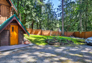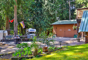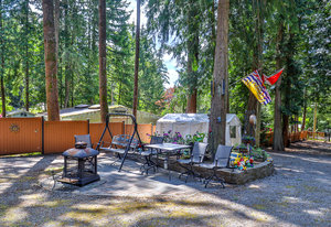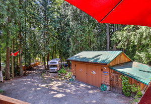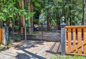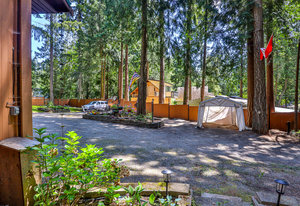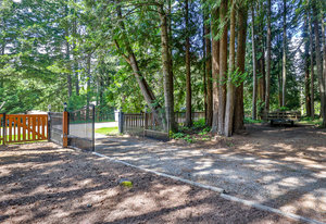 The meticulously maintained park-like property boasts lush gardens, stone retaining walls, and cobblestone pathways. A wired greenhouse offers year-round gardening, while the fully serviced RV pad (electric, water & septic connections!) provides additional convenience. Ample parking for multiple vehicles, boats, or recreational toys. The solar-powered, automated gate ensures privacy, and almost the entire perimeter is fenced w/ 6’ cedar panels.