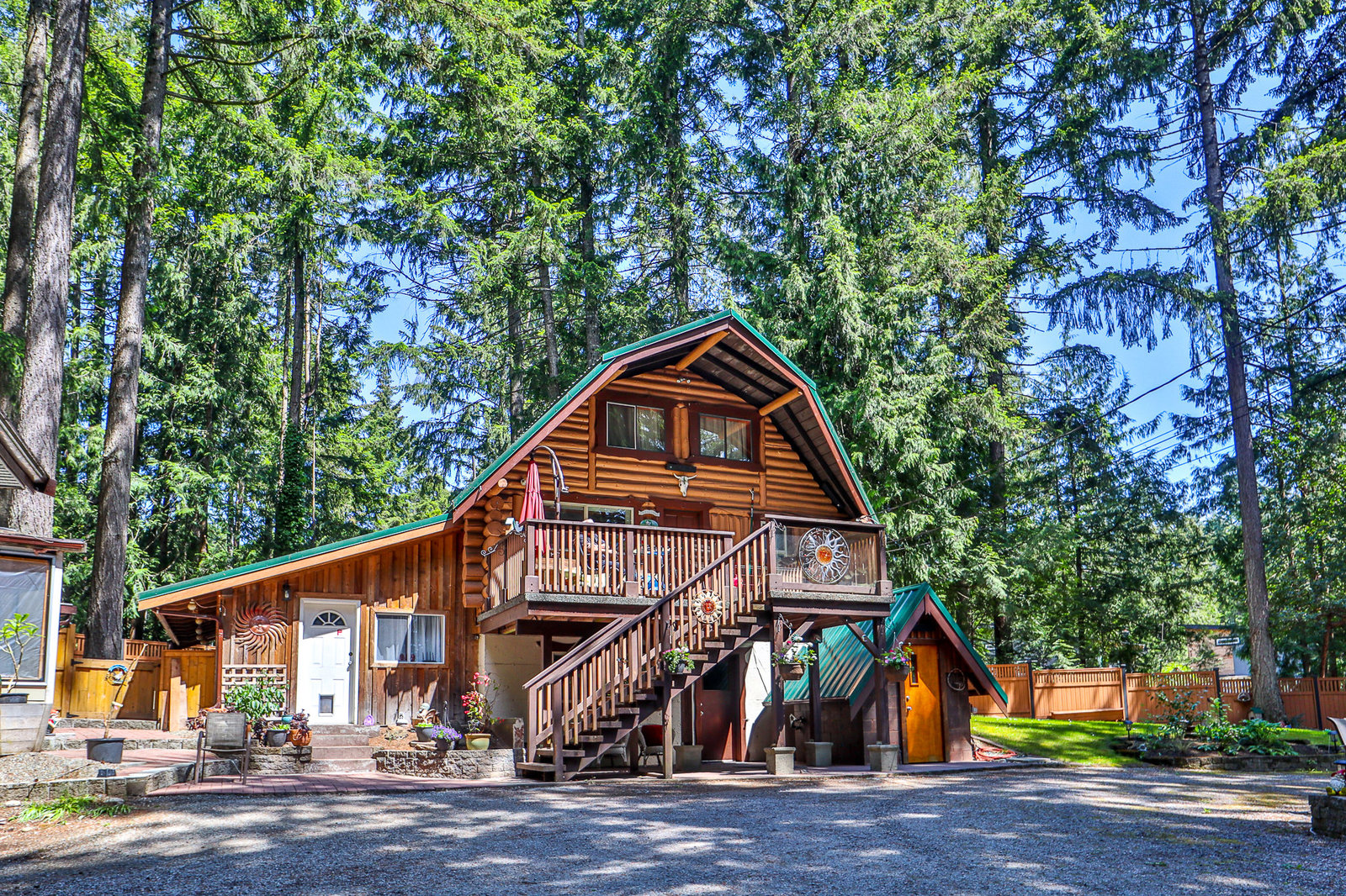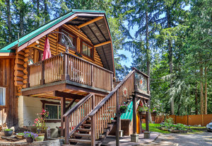 Charming three-level log home in Cobble Hill with a 472 sq.ft. 1-bed/1-bath ground-level suite, a 1,193 sq.ft 2-bed/1.5-bath layout on the two upper floors, plus a bonus 242 sq.ft studio (outdoor access only). Highlights of this private and serene 0.57 ac. property include a 1,000 sq.ft. detached workshop, greenhouse, fully-serviced RV pad, perimeter fencing with a gated entry, and more!