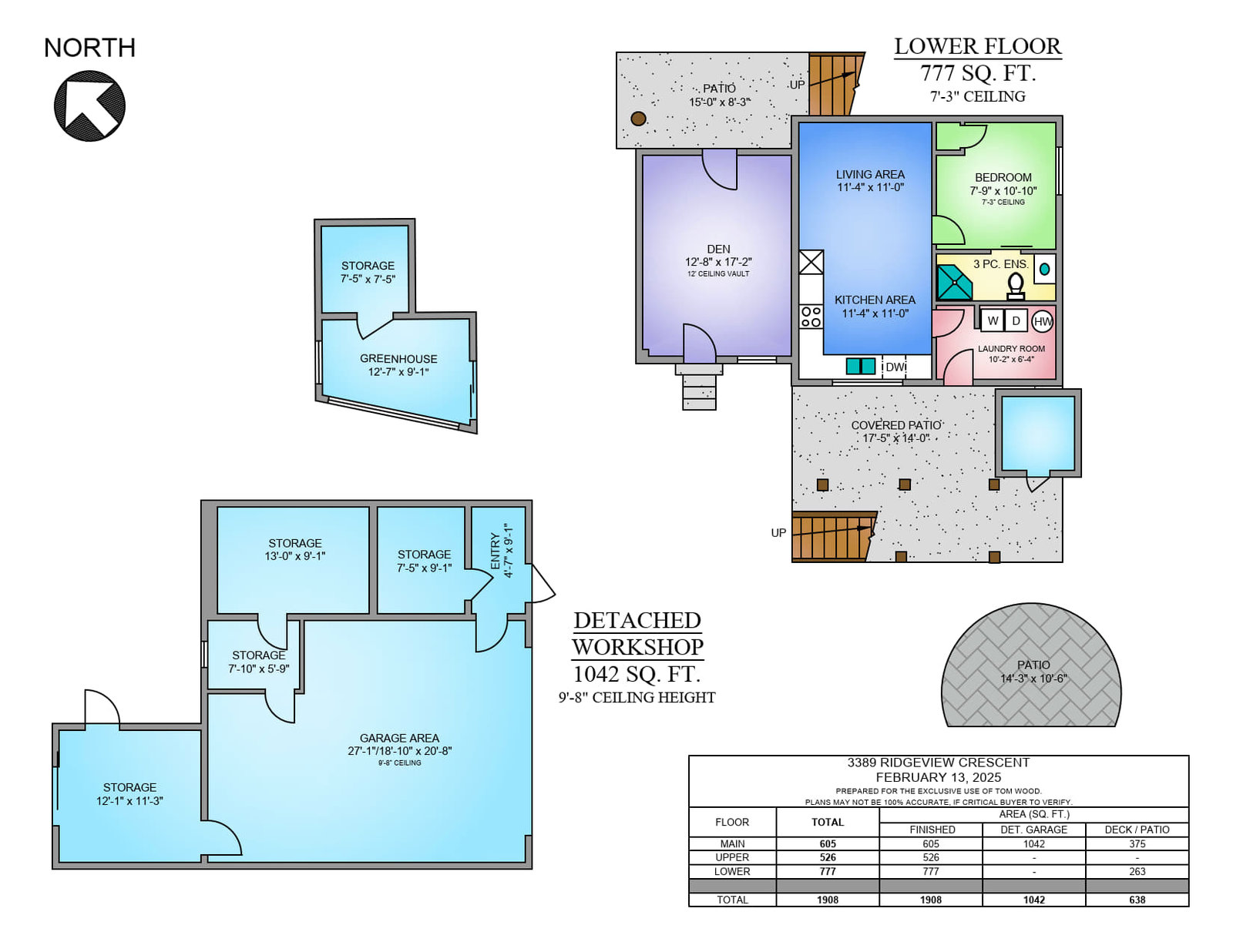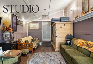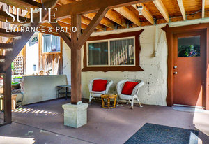 A separate 13x17 studio with 12’ vaulted ceilings and modern finishes is accessible from both the front and rear patios—perfect as a guest room, B&B suite, playroom, or home office/business (exterior access only).