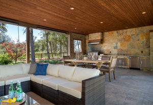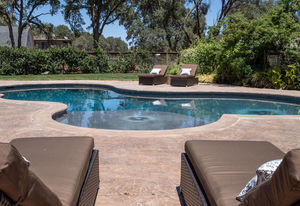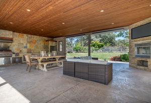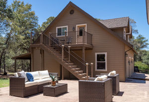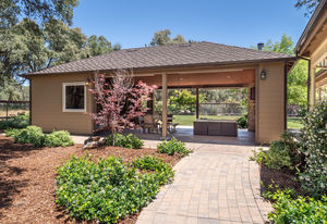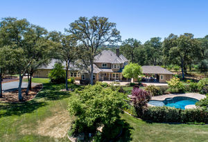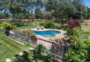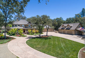 No corner has been cut, no detail spared in this spectacular country DREAM house & property! 3,500 sqft, 5bd/3ba main house with nature’s finest finishes - Brazilian blonde natural oak flooring, travertine stone floors, raw edge wood counter & granite slabs in kitchen and baths. Find stainless steel appliances, 2 dishwashers and French Country stone finishes in the kitchen; natural stone shower and deep alcove tub in master bath; incredible bay window floor plan in master bedroom & LR with 2 fireplaces, tankless water heaters and Trex decking wrap around porch. Entertain in style from the Tahoe Blue saltwater pool and pavilion with granite & slate finishes, built-in BBQ, appliances and 1/2 ba with open living space. Invite guests to stay in the separate1 br/1ba apt with luxury details, full kitchen, laundry and Trex decking. Extra office space with/bath attached to 3 car garage adds to the possibilities. This beautifully landscaped gated property holds 60+ fruit trees and vines, raised bed garden, kids playground and is fenced for horses/goats. Peaceful cul-de-sac location within walking distance to high school. Luxury living in the heart of country!