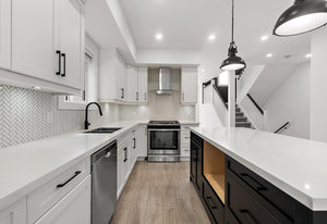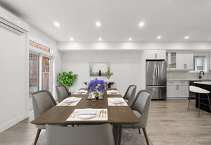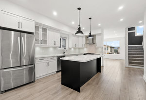 This well-designed three-level home offers a comfortable & functional living space w/ the added bonus of a mortgage helper! The main floor boasts an open concept layout, allowing for easy flow between the living room, kitchen & dining room. The kitchen is beautifully designed w/ an island providing ample counter space & storage. The formal dining room is spacious enough to accommodate a large dining table or can divided to make room for extra family area or office space. You'll love the little extras like stylish color palette & design, stunning feature fireplace & heat pump w/ AC! Upstairs the primary bedroom is a true retreat w/ ensuite bath & walk-in closet. Two ...