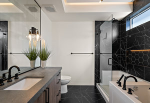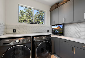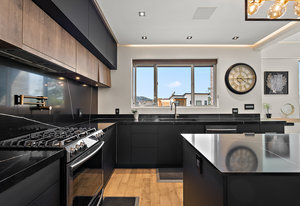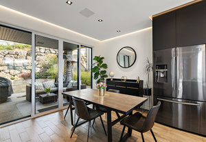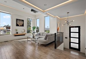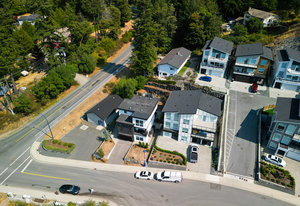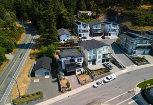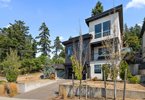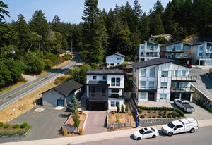 Modern, Contemporary & Bold, this 4 bed/4 bath home with legal suite in the heart of Langford is thoughtfully designed and an entertainer's dream! Built in 2020, this 2,600+ sq ft stunner blends style, function & quality. Eye-catching exterior with stamped concrete, lit aggregate walkways, custom railings & a mix of brick, stucco & wood. You will love the open layout and high-end finishings with high ceilings, recessed lighting, a large media/entertainment room, spacious great room & a dream kitchen with gas range, oversized quartz island & dining area. Step out to a covered patio with gas fireplace & fenced yard—perfect for kids, pets & entertaining. Upstairs, retreat to the primary oasis with valley views, walk-in closet & spa-like ensuite, plus 2 more bedrooms, walk in laundry room & a 4-pc bath. Added perks: heat pump, on-demand HW, projector and surround sound, security system, EV charger, central vac & premium finishes throughout. A like-new executive home with income potential!