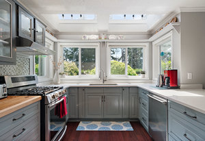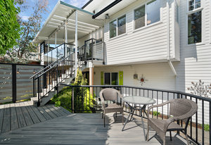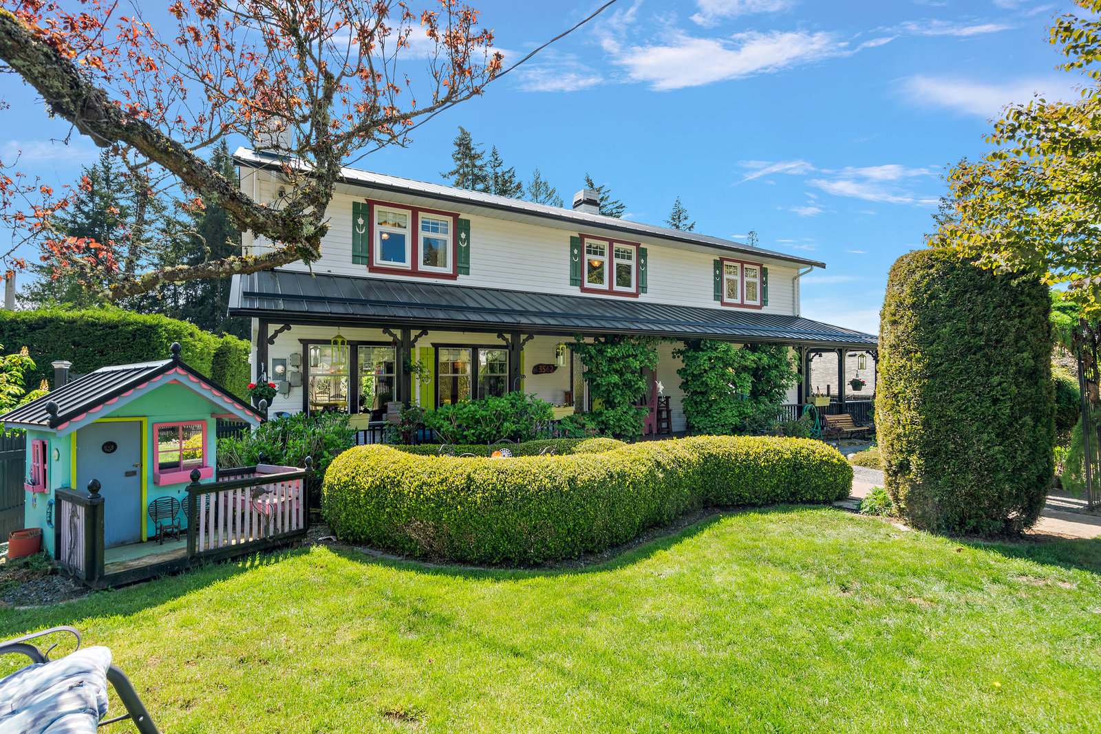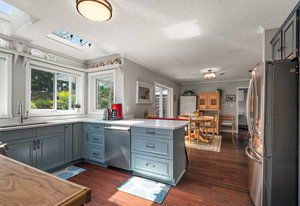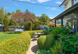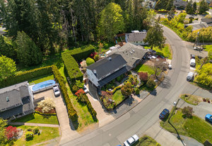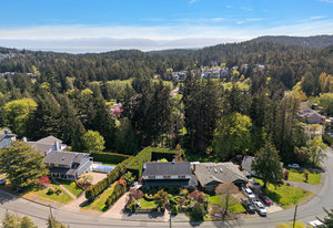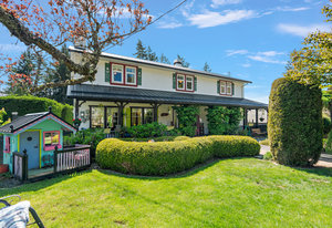 Welcome home to this charming property offering over 3300sf of living space, a flexible multi generational living floorpan and outdoor space of your dreams! This 5 bed, 4 bath home is filled with natural light and has beautiful skylights. You will instantly feel the charm as you enter through the manicured and fully fenced front yard with pond & waterfall feature. A large front porch is perfect for morning coffee. The main floor has an updated kitchen, exquisite dining room, living area and a bedroom w/ ensuite and easy access to side door (potential student rental?). Upstairs are 3 huge bedrooms including the primary bedroom with a walk in closet & coffee bar and freshly renovated spa-like ensuite w/ big soaker tub! A large self contained 1 bedroom suite is perfect for generating revenue or extended family. The private backyard is a true oasis... Enjoy a covered deck off the kitchen, 2 more patios, garden beds and much more. Located on a quiet street & walking distance to Olympic View Golf, Red Barn Market & Havenwood Park!