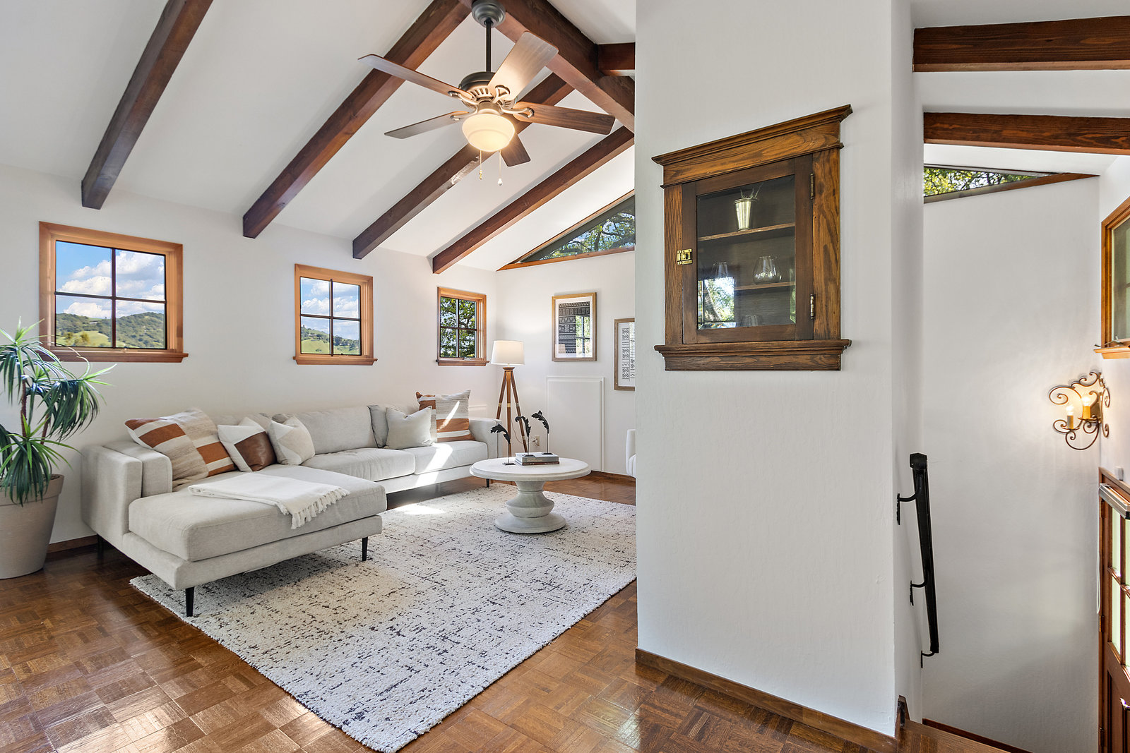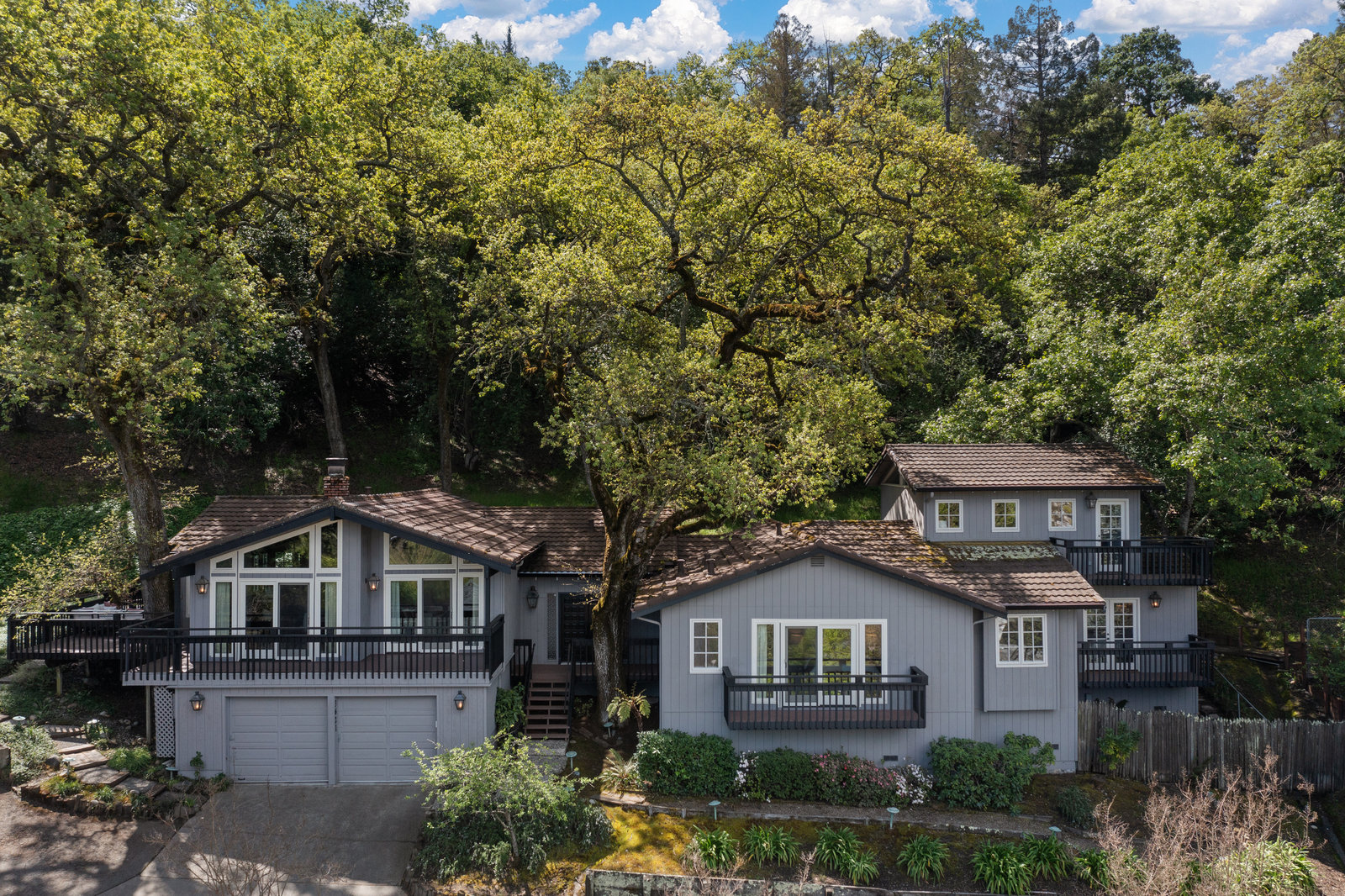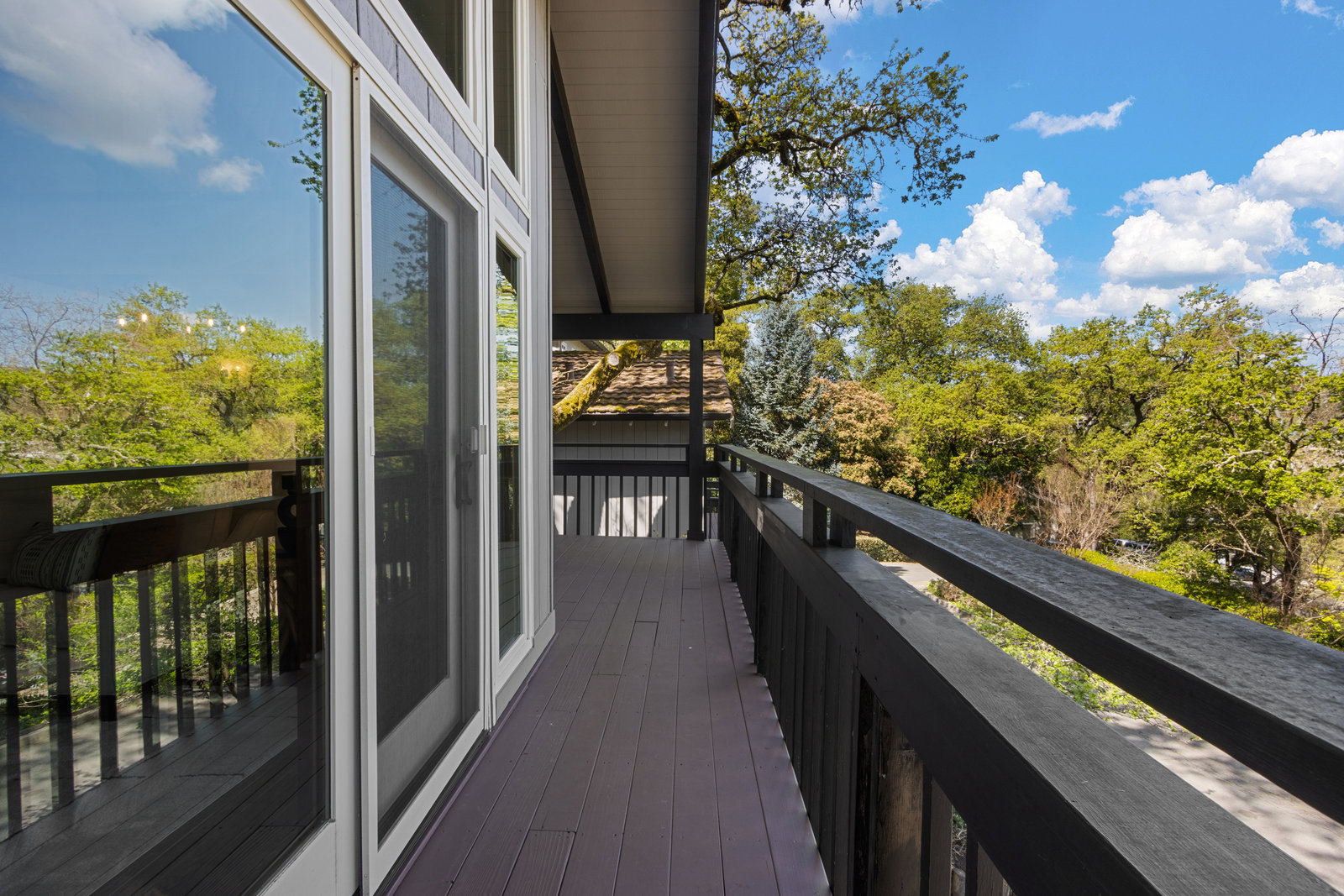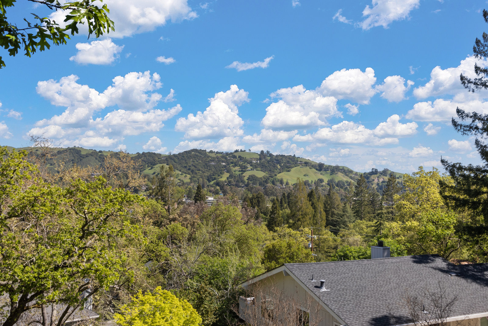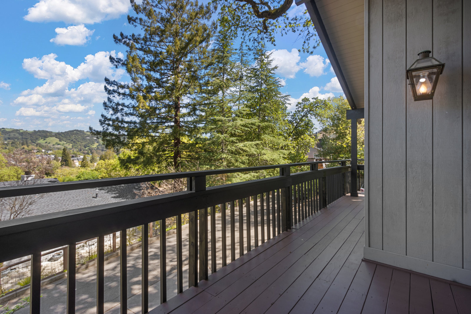 As you enter through the foyer, you'll be greeted by grand living spaces featuring a stunning vaulted beamed ceiling that showcases beautiful views of the treetops overlooking the town center. The home includes three well-sized secondary bedrooms and a generous primary bedroom, boasting two walk-in closets, an ensuite bathroom, and abundant natural light streaming through sliding doors leading to a private balcony. Work from home in the upper level in complete privacy, whilst still enjoying the ever verdant hills that make Lafayette a desirable place to call home.