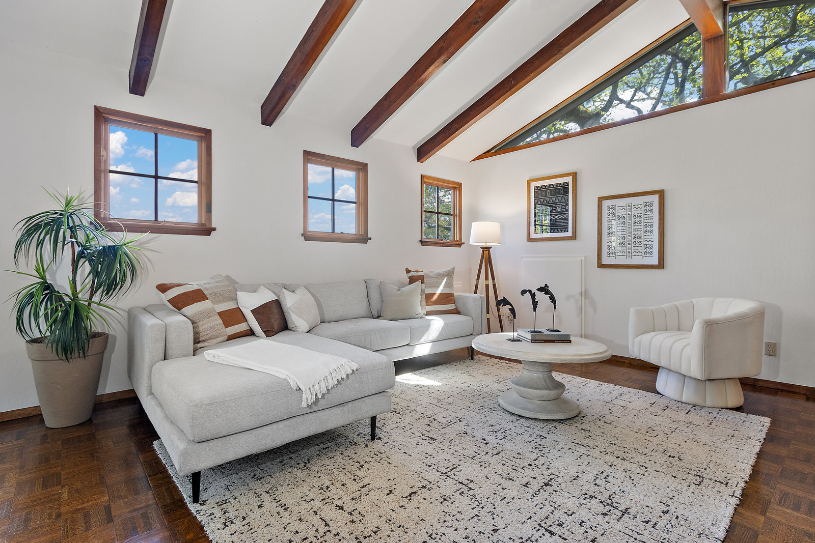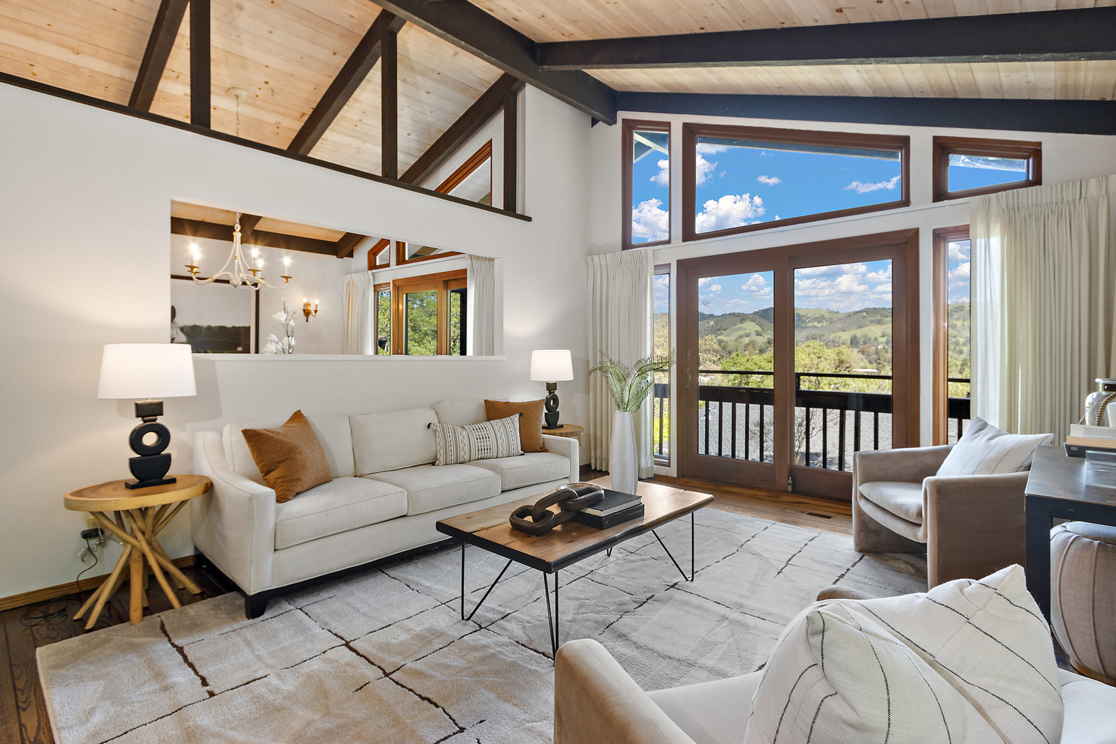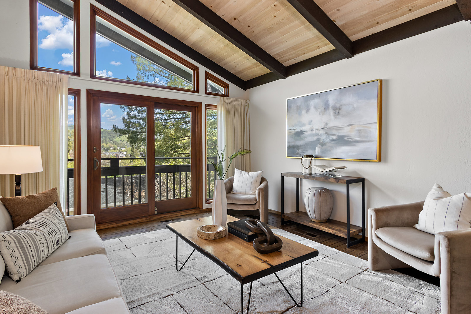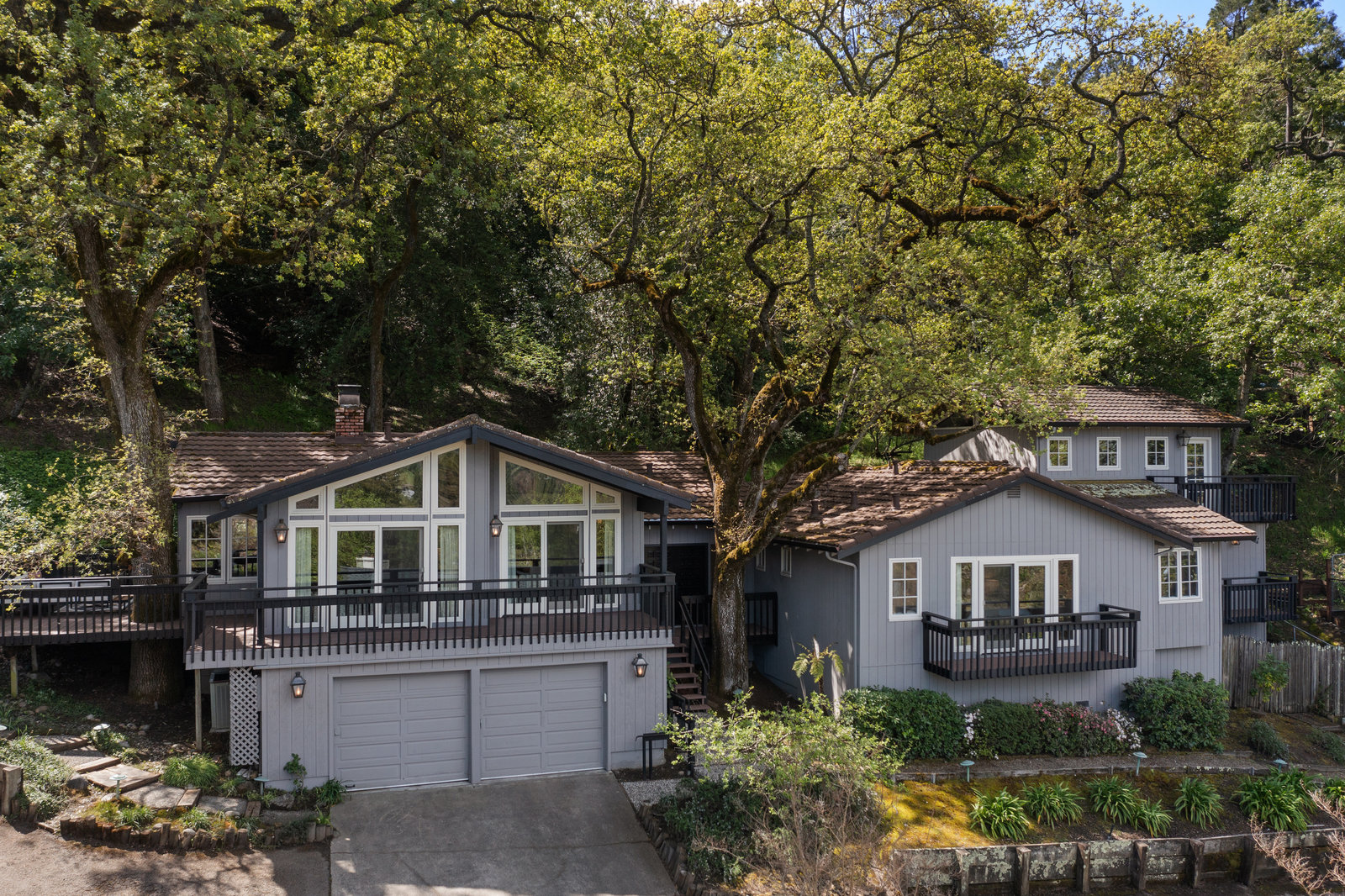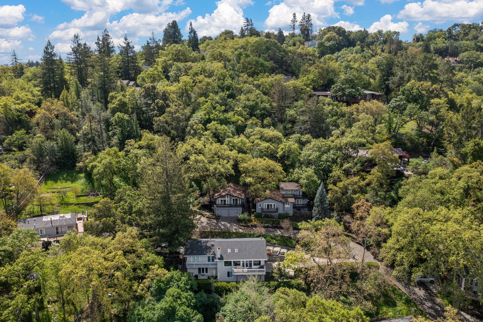 As you enter through the foyer, you'll be greeted by grand living spaces featuring a stunning vaulted beamed ceiling that showcases beautiful views of the treetops overlooking the town center. The home includes three well-sized secondary bedrooms and a generous primary bedroom, boasting two walk-in closets, an ensuite bathroom, and abundant natural light streaming through sliding doors leading to a private balcony. Work from home in the upper level in complete privacy, whilst still enjoying the ever verdant hills that make Lafayette a desirable place to call home.