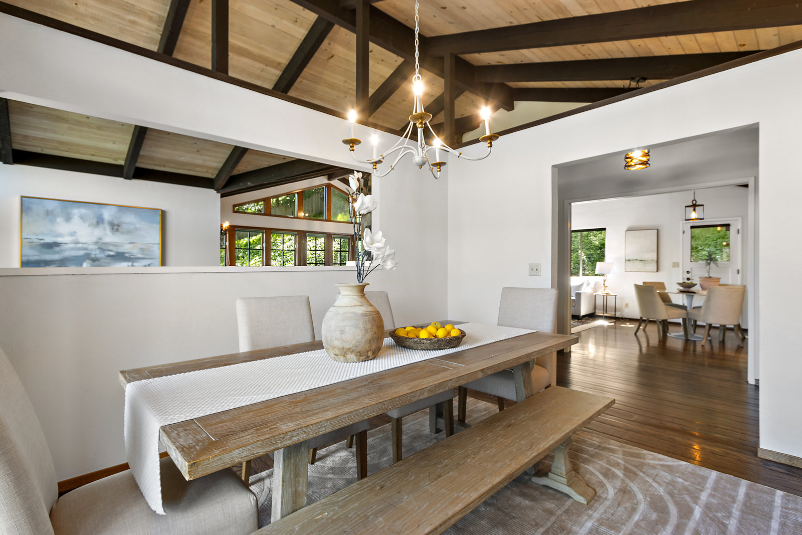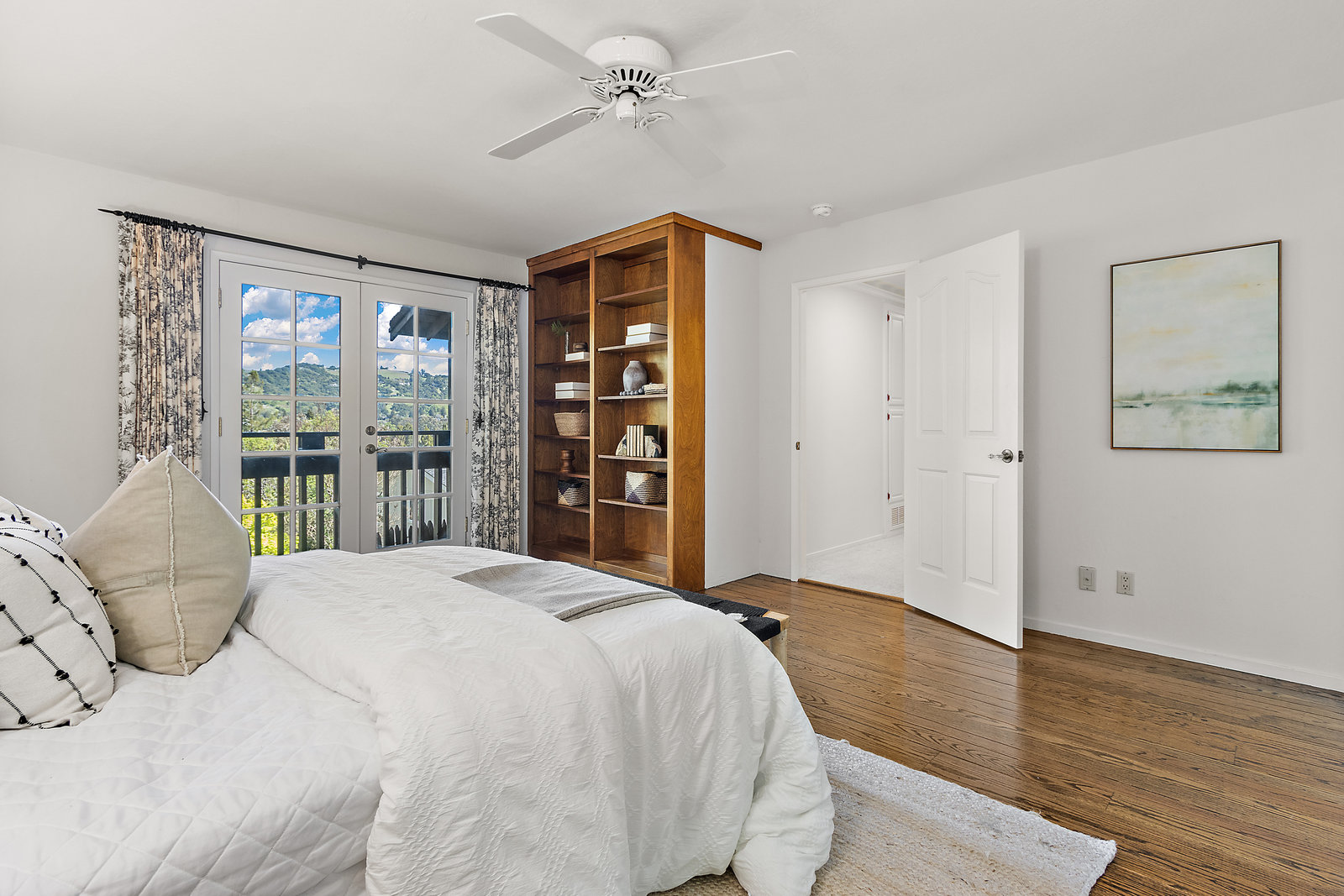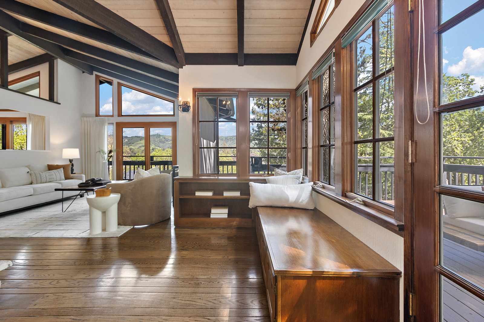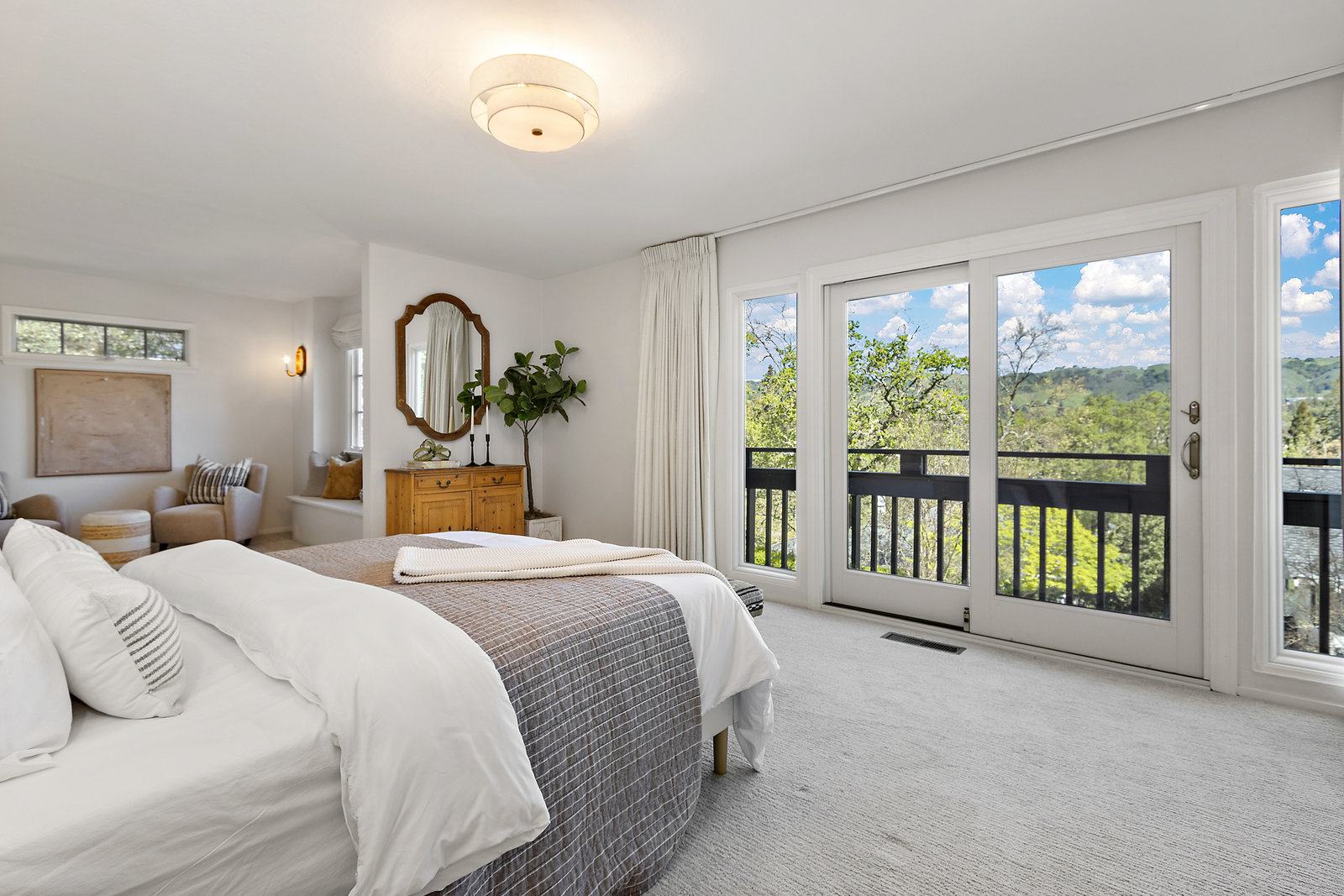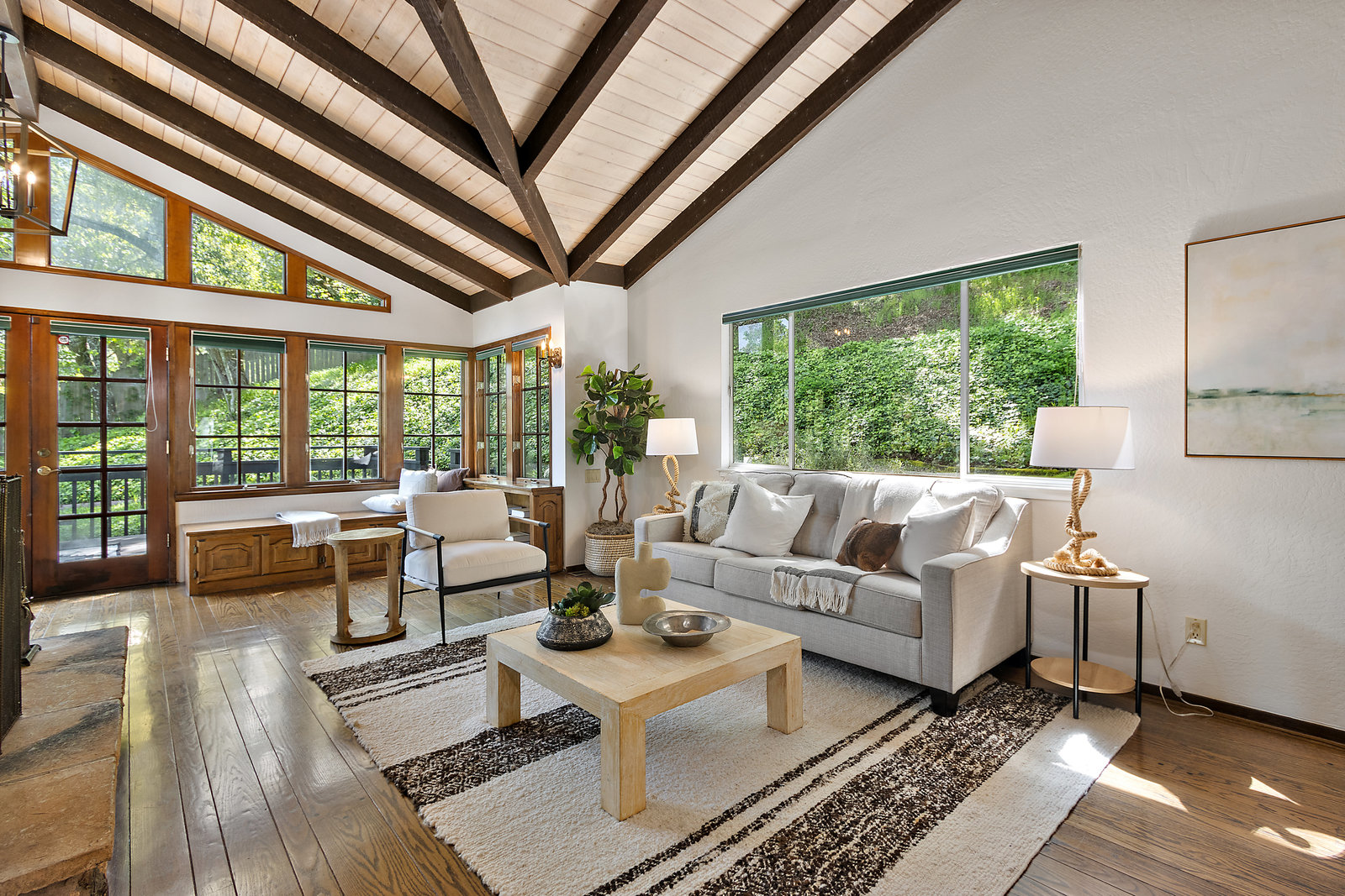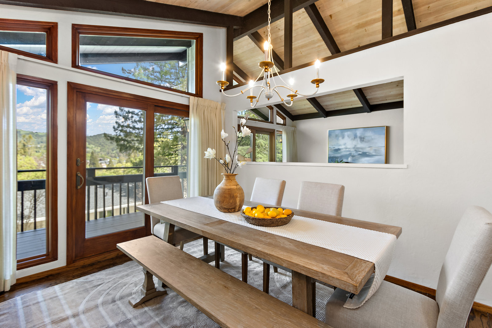 As you enter through the foyer, you'll be greeted by grand living spaces featuring a stunning vaulted beamed ceiling that showcases beautiful views of the treetops overlooking the town center. The home includes three well-sized secondary bedrooms and a generous primary bedroom, boasting two walk-in closets, an ensuite bathroom, and abundant natural light streaming through sliding doors leading to a private balcony. Work from home in the upper level in complete privacy, whilst still enjoying the ever verdant hills that make Lafayette a desirable place to call home.