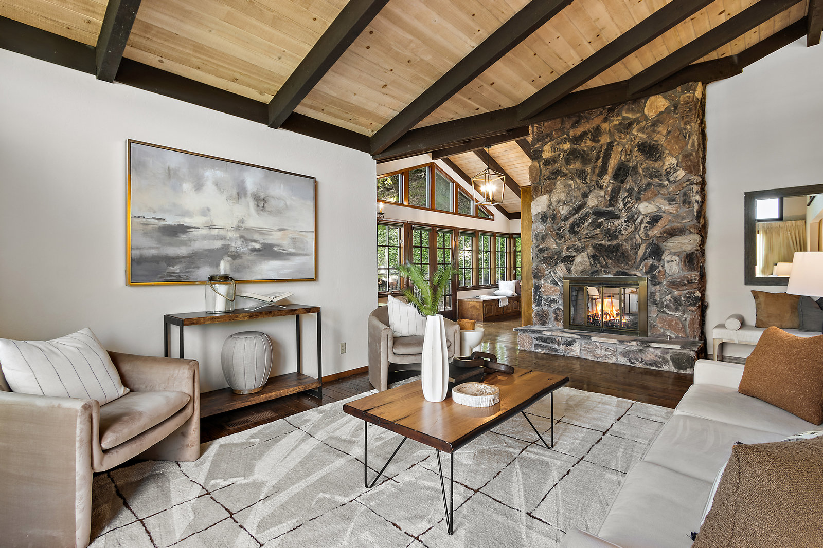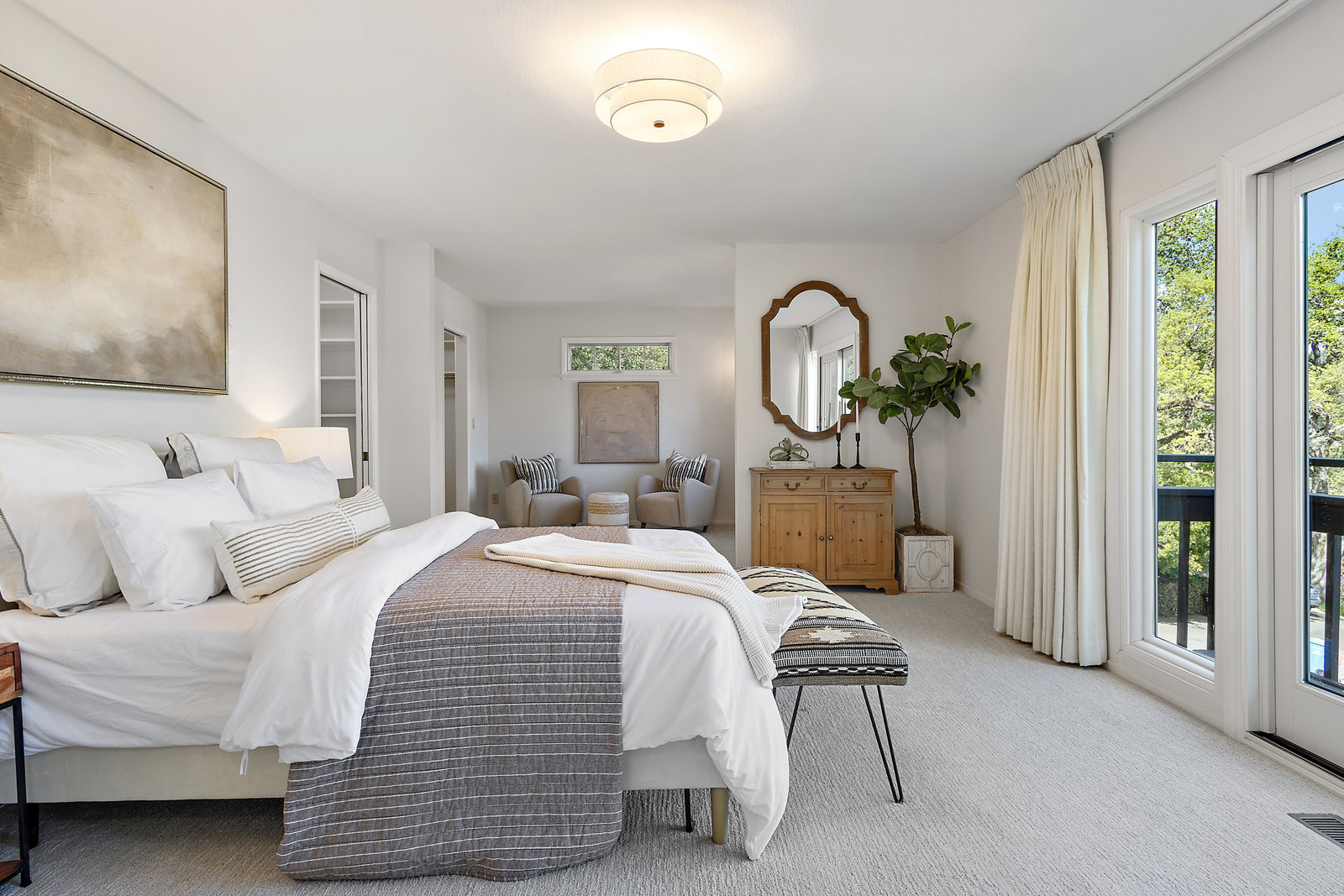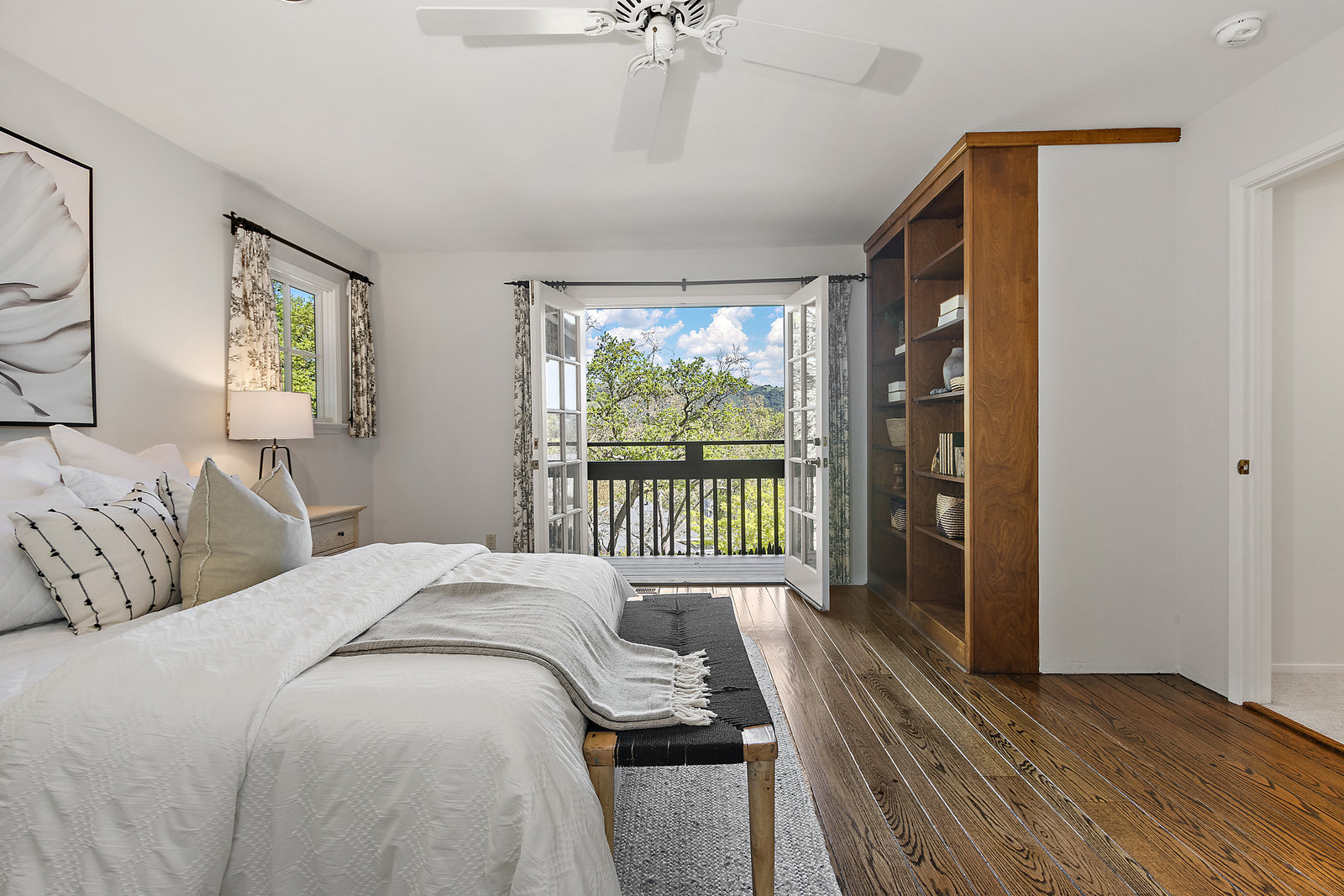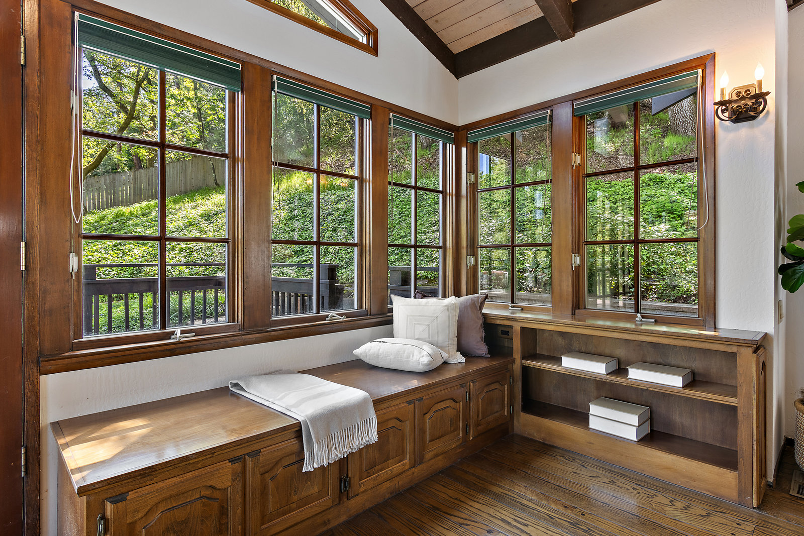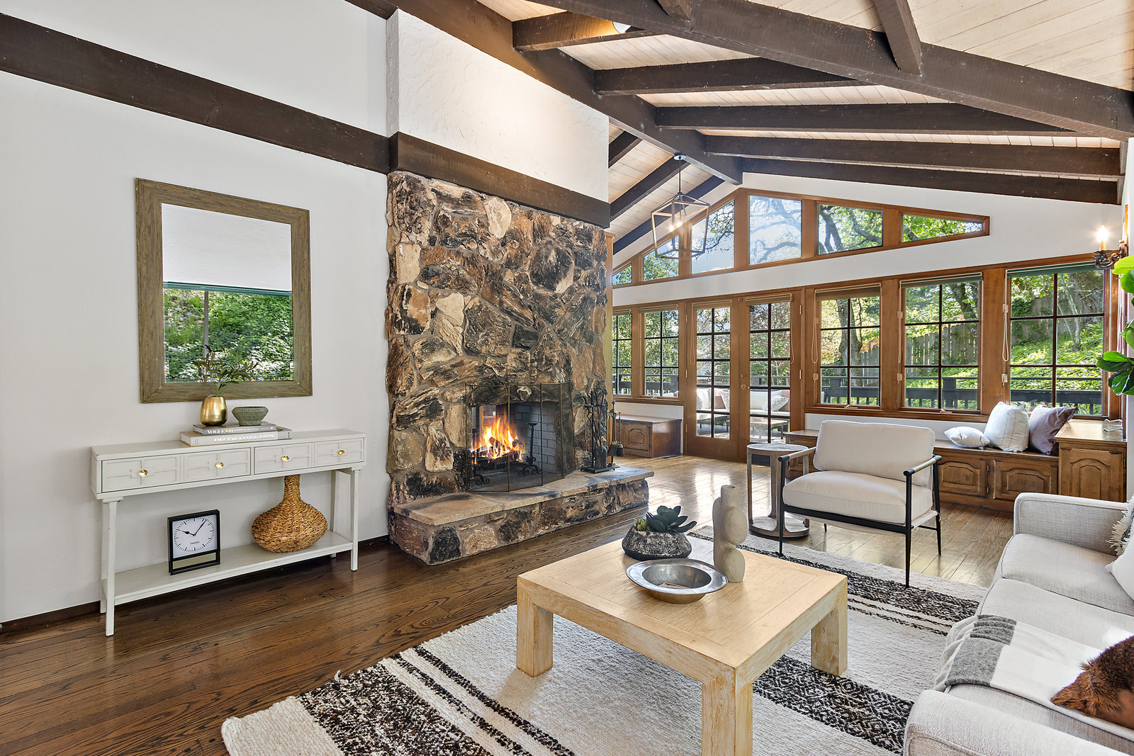 As you enter through the foyer, you'll be greeted by grand living spaces featuring a stunning vaulted beamed ceiling that showcases beautiful views of the treetops overlooking the town center. The home includes three well-sized secondary bedrooms and a generous primary bedroom, boasting two walk-in closets, an ensuite bathroom, and abundant natural light streaming through sliding doors leading to a private balcony. Work from home in the upper level in complete privacy, whilst still enjoying the ever verdant hills that make Lafayette a desirable place to call home.