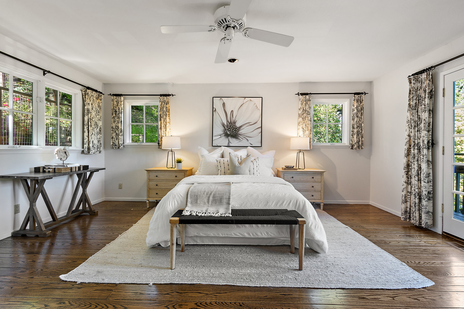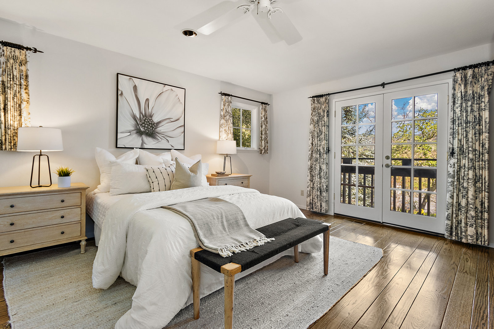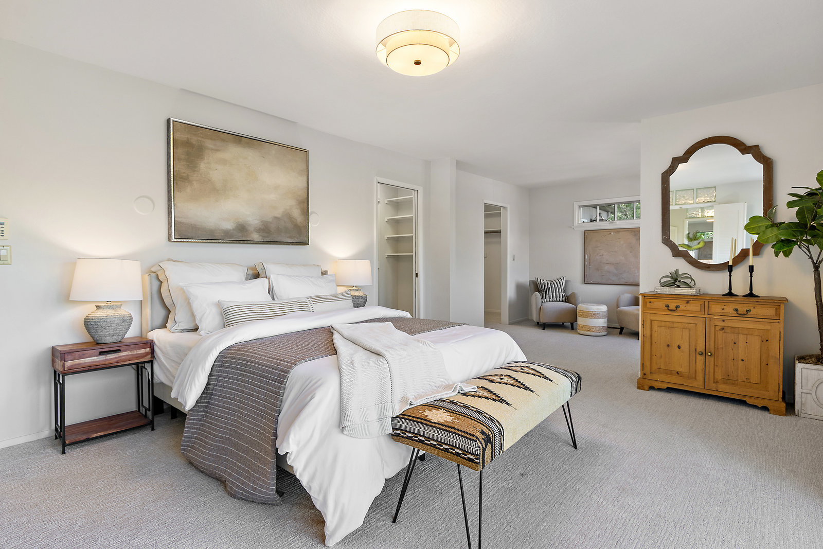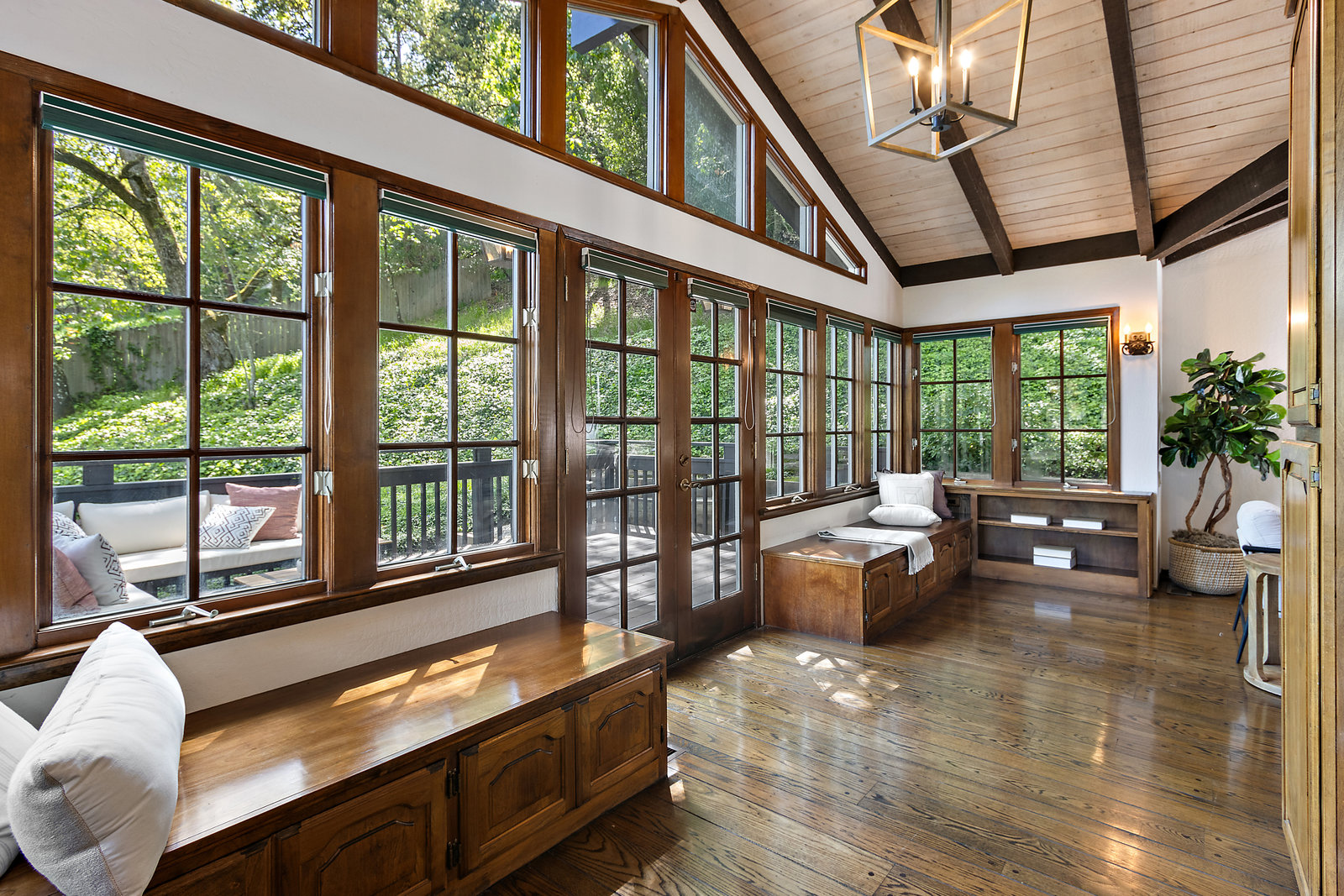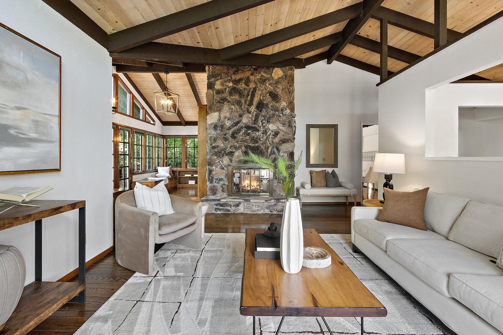 As you enter through the foyer, you'll be greeted by grand living spaces featuring a stunning vaulted beamed ceiling that showcases beautiful views of the treetops overlooking the town center. The home includes three well-sized secondary bedrooms and a generous primary bedroom, boasting two walk-in closets, an ensuite bathroom, and abundant natural light streaming through sliding doors leading to a private balcony. Work from home in the upper level in complete privacy, whilst still enjoying the ever verdant hills that make Lafayette a desirable place to call home.