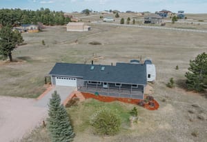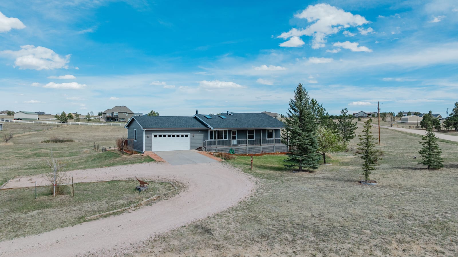 Welcome to your peaceful country retreat in Elizabeth, Colorado! Just 200 yards off pavement and situated on 5 usable acres, this well-cared-for ranch-style home offers the perfect blend of privacy, space, and potential. Whether you're looking for room to spread out, space for animals, or a multi-generational living setup, this property has so much to offer. The home's layout offers comfort and functionality with a welcoming feel throughout. The main level features 2 spacious bedrooms, full bathroom, the primary bedroom & bathroom, along with the laundry room, kitchen and dining room. Newer interior paint and newer stainless steel kitchen appliances. The oversized 2-car garage on this level offers plenty of space for vehicles, tools, or toys. Downstairs, the walkout basement is a blank canvas with a finished bathroom already in place, its own separate entrance and a 2 car garage—making it ideal for adding a mother-in-law suite, rental unit, or expanded living space. 8x10 storage shed, small fully fenced yard, new sewer line from house to tank and newer roof. This one is a must see! The recent community vote was in favor of dissolving the community covenants. It is a multi-step process and the Board is working through each phase. Please visit the community website for additional information.