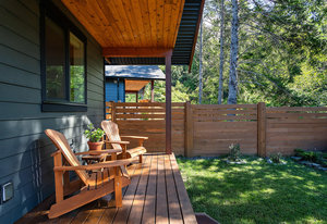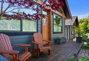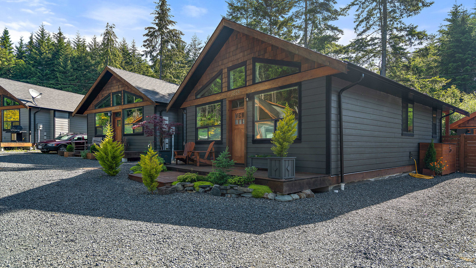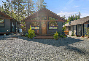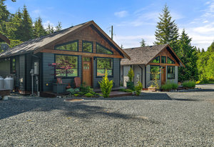 This two-bedroom, one-bathroom coastal wilderness home combines modern elegance with rustic tranquility. The timber-frame house has a spacious feel, thanks to vaulted ceilings, plentiful windows, and an open-concept floorplan. Take in the scenery year-round from your front porch or covered back deck. The beautifully landscaped property comes equipped with a storage shed and standalone studio, office, or bunk house. Nestled among forest trails and breathtaking beaches, Trailhead Landing consists of fifteen detached cabin homes. Outdoor opportunities abound, with Jordan River Beach, China Beach Campground, Mystic Beach, and French Beach Provincial Park all nearby. The area is a haven for outdoor enthusiasts, with iconic gathering spots like Shirley Delicious and Cold Shoulder Café within easy reach. Drive just thirty minutes to Sooke or Port Renfrew; an hour to Langford; or ninety minutes to downtown Victoria. Make Trailhead Landing your personal getaway or an unforgettable short-term rental for visitors to enjoy.