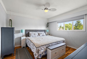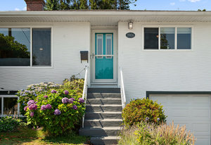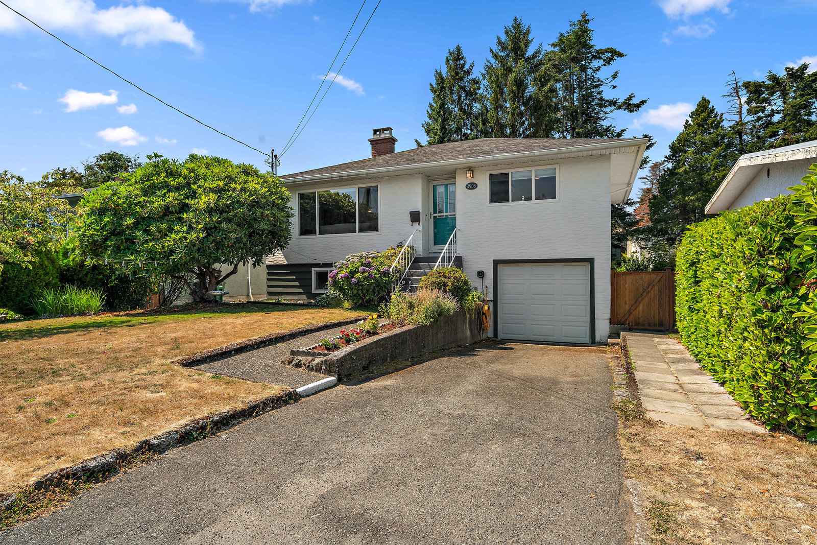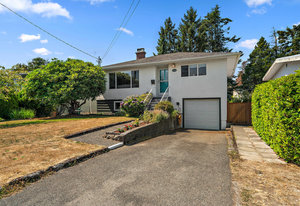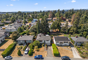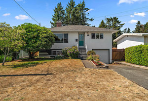 Available for the first time in nearly four decades, this lovingly maintained family home boasts a number of modern updates while retaining the charming character of its heritage. The original hardwood floors have been carefully preserved, and natural light that shines through the large upgraded windows along with a series of skylights help accentuate this meticulously cared for sanctuary. An urban oasis with a well established yard offers peace and tranquility, whether being enjoyed from the developed garden, the spacious seating area, or from the beautiful bay window in the addition done by Vickery & Sons which created a bright, sprawling dining room - perfect for entertaining. More recent improvements include upgraded electrical service to 200 amps (2022), a new heat pump (2023), while upgraded vinyl windows, the addition done in 2005 and roof replacement in 2007 have served to increase the size of the home and ensure building systems have been modernized. The lower level offers a spacious family room with wood stove which could easily be used as a third bedroom, a half bathroom, a huge laundry room, ample storage space, and access to the large attached garage. Conveniently located in a quiet, community oriented neighbourhood and a few minutes drive to Tilicum and Uptown malls as well as Swan Lake, this home and community have much to offer and await new owners to continue making memories for years to come.