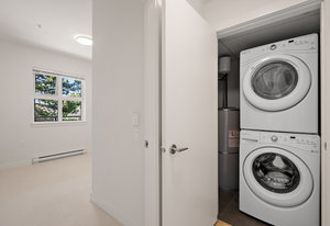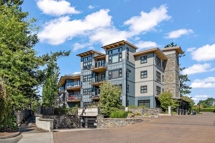 Location, location, simplicity. This elegantly designed, 2-bed, 2-bath condo is part of Saanich’s Seven Oaks neighbourhood, which combines tranquility and convenience. Short drives lead to Swan Lake and the Colquitz Creek trail network or to Uptown Mall and Pearkes Recreation Centre. This 2014 unit is ready for immediate possession. The kitchen features Bosch appliances and quartz countertops. Your primary bedroom has a walkthrough closet and 5-piece, en-suite bath. A smaller, second bedroom could function as a large office or comfortable guestroom. Additional features include in-suite washer and dryer, lots of storage, underground parking, and peaceful, treed grounds. Soak up the sun on the unit’s spacious, south-facing deck, or enjoy 2 common, rooftop patios offering unstoppable views. Woodland Heights’ well-run strata is known for collaborative management of this family-friendly, low-emissions building. Pets and rentals welcome!