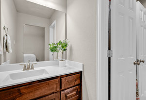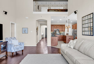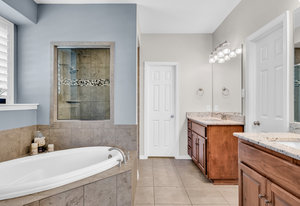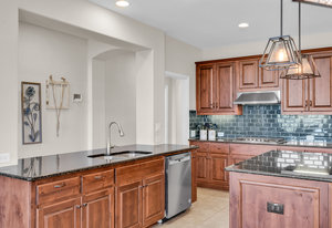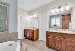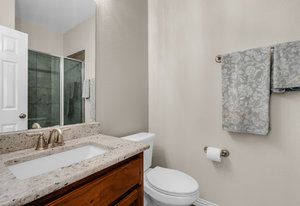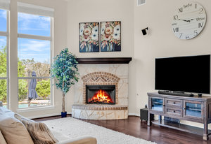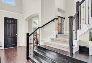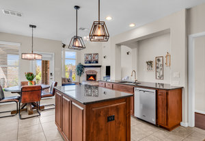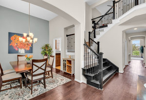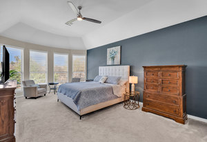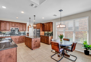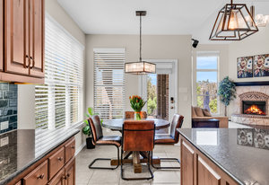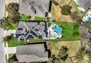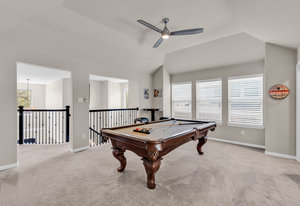 Inside, the upstairs game room with a connected bar is perfect for entertaining, while two guest bedrooms share a convenient Jack and Jill bathroom. Eco-conscious buyers will appreciate the addition of solar panels, offering energy efficiency and savings. Downstairs the large primary ensuitet bedroom overlooks the pool and backyard. The kitchen features a breakfast nook, butler pantry, and formal dining.