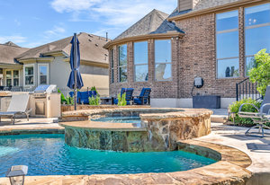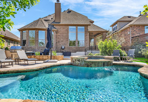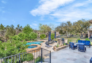 New roof and solar [50 year and 25 year warranty.] This beautiful 4-bedroom home offers 2,916 square feet of versatile living space. This property shines with its outdoor oasis, featuring a beautiful free-form pool with spa, an outdoor kitchen, and a firepit, all backed by mature trees for added privacy.