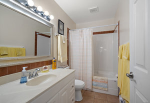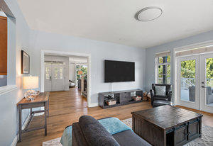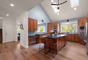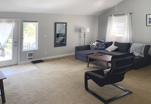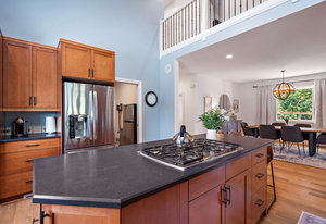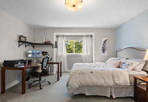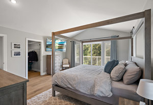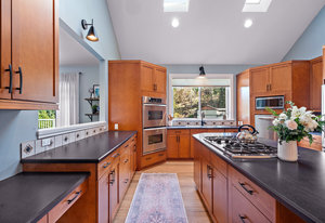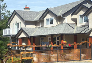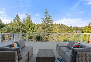 The rental suite above the garage has a vaulted ceiling, its own sundeck and is fully furnished.
