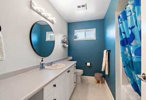 The lower level walk-out features a 1400+ living accommodation for family or Airbnb. It has a separate entrance, covered patio, well-designed kitchen, pantry, large bedroom, and another large room for family fun or another guest room.