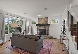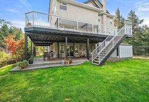 This 3 storey home, with 3 distinct living areas, features large rooms, vaulted ceilings, a lower level accommodating in-laws or Airbnb, and a legal suite above a 2 car garage. The main floor has a certified wood burning fireplace insert! The bright kitchen provides more than ample cabinetry, and an adjacent pantry. Both the living room and family room exit onto a large-sun deck. Upstairs, looking down on the floor below, boasts a large decked primary bedroom and dream ensuite with jetted tub and 2 person walk in shower. Two+ bedrooms and a 2nd bathroom finish the area.