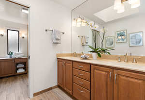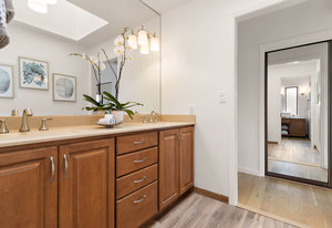 Beautifully updated and expanded Inverness model perched high on the hill adjacent to the 5th tee box. Rare court location offers the new homeowner its own private cul-de-sac and a beautiful green golf course as your neighbor. Freshly painted with plush new carpets and hardwood floors, this inviting home has many upgrades including a remodeled bathroom in the oversized primary bedroom. Formal living, dining and family rooms with two cozy fireplaces is a rare combination in MCC. You’ll love the newly built “sun room” with walls of glass and soaring skylights. This bonus room is ideal for bedroom, workout room, playroom, office, etc. Flowering trees, lush yard spaces and handsome “trex” style decks make this a perfect spot to bar-b-que with friends and watch MCC fireworks on the Fourth of July. Open 3/30 & 3/31. Tell a Friend!