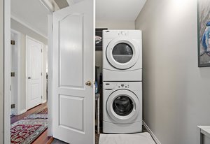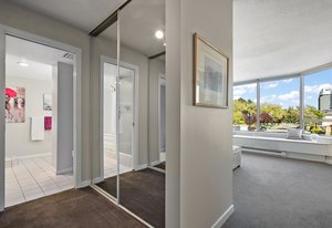 As one of the largest units in the building, it includes secure underground parking with storage and a car wash station. Two large patios provide additional outdoor space.