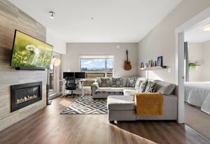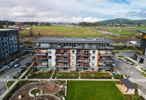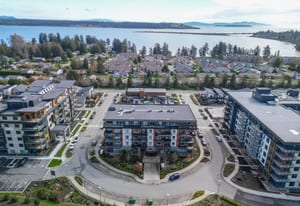 Welcome to The Arbutus—a like-new 2019-built 4th floor residence in Saanichton. This beautifully designed 2 bedroom, 2 bathroom home offers an excellent floor plan with ideal bedroom separation, each featuring walk-in closets and ensuite bathrooms. The primary ensuite boasts luxurious heated tile floors for year-round comfort. The open-concept living, dining, and kitchen area is enhanced by 9’ ceilings, triple-glazed soundproof windows, and a cozy natural gas fireplace. The chef-inspired kitchen includes stainless steel KitchenAid appliances, a gas range, quartz countertops, and ample storage—perfect for entertaining or everyday living. Additional features include in-suite laundry with gas dryer, secured underground parking with recently installed EV charging infrastructure, storage locker, bike storage, designated visitor parking and street parking with free city EV charging station outside. Pet friendly building allowing two dogs or two cats or one of each with no size restriction. Still covered by the 2-5-10 National Home Warranty. Ideally located in Central Saanich, just minutes to downtown Sidney, ferries, and the airport, with easy access to Victoria. Steps from popular Marigold Cafe and a convenient family clinic and pharmacy. Outdoor enthusiasts will love the nearby Lochside Trail, perfect for cycling and jogging. A fantastic opportunity to enjoy modern living in a prime location.